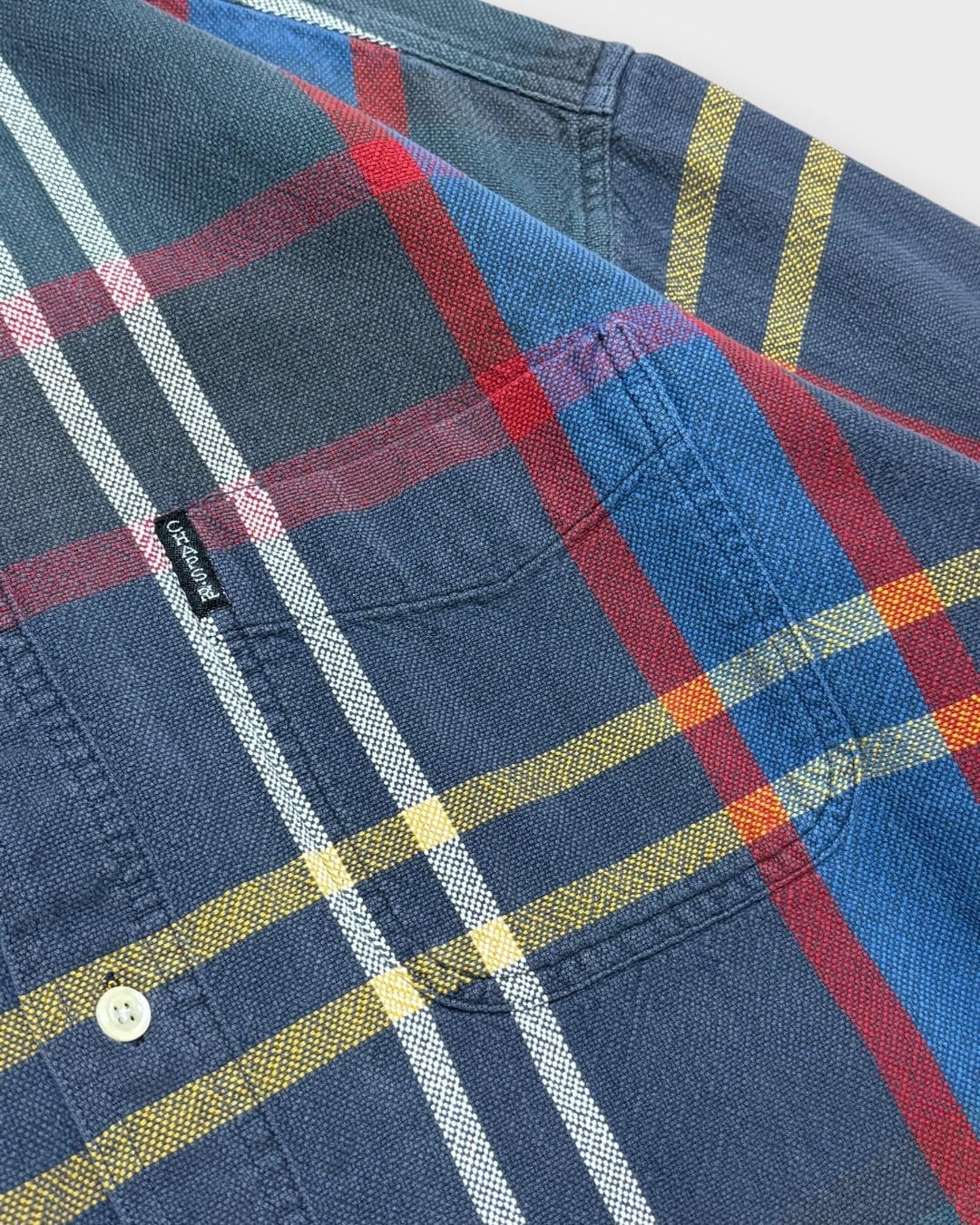 フェードブラックベースにレッド・イエロー・ホワイト、ブルーが映えるマルチカラーのチェック柄。
