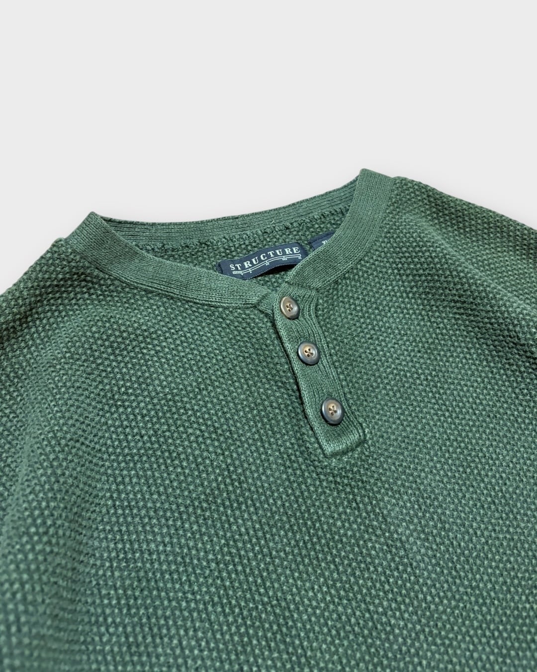 【Used】“STRUCTURE” Ramie Cotton Textured Knit Henley