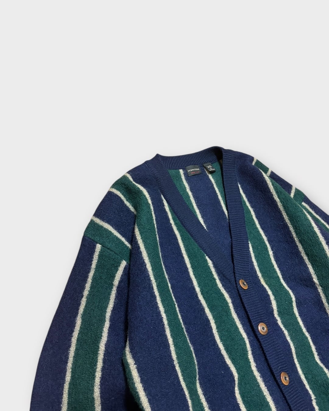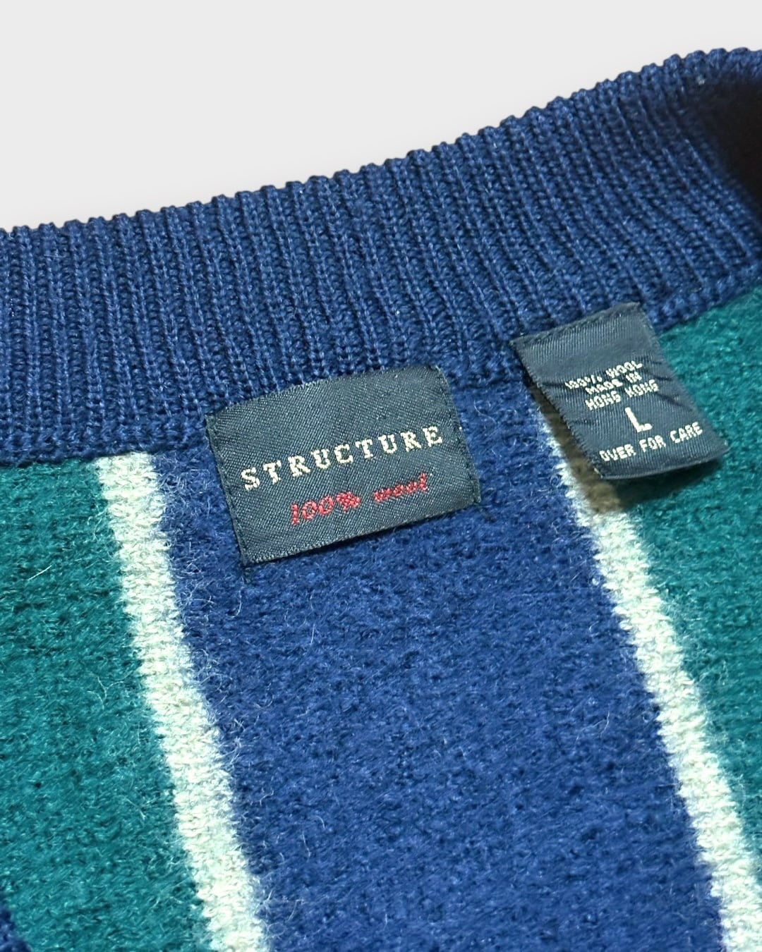 【VINTAGE】1990’s “STRUCTURE” Wool Stripe Knit Cardigan