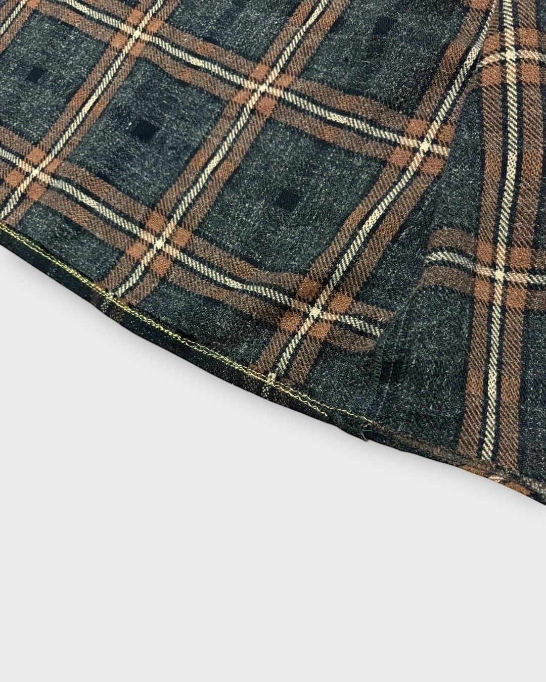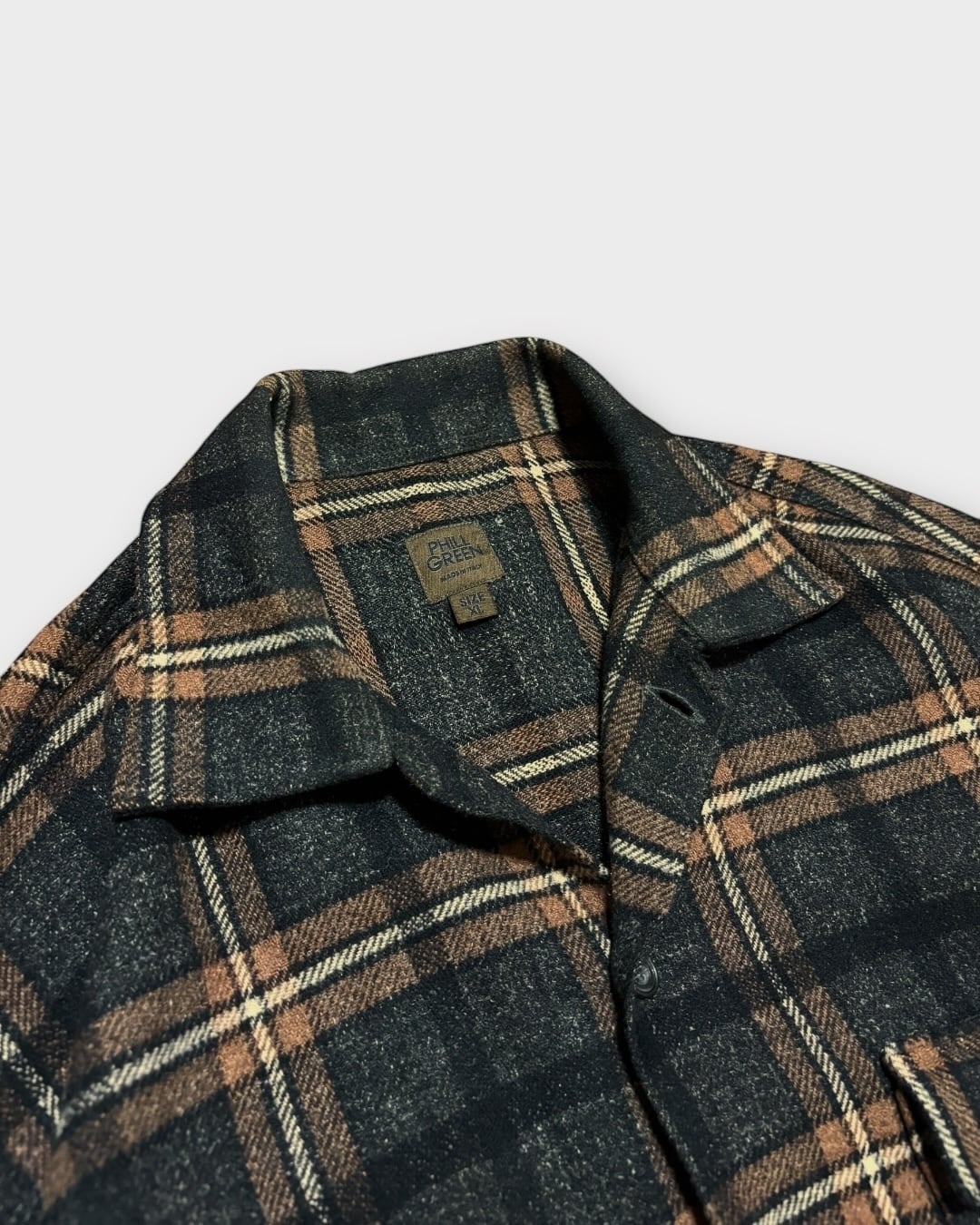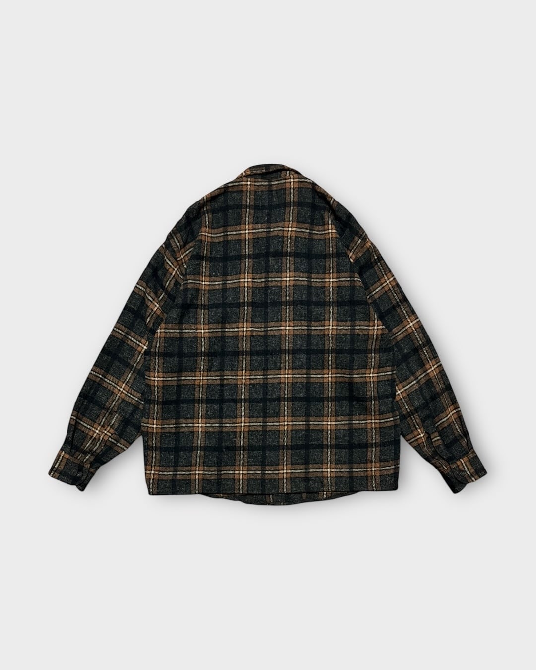 【Used】“PHIL GREEN” Wool Blend Open Collar Check Shirt MADE IN ITALY