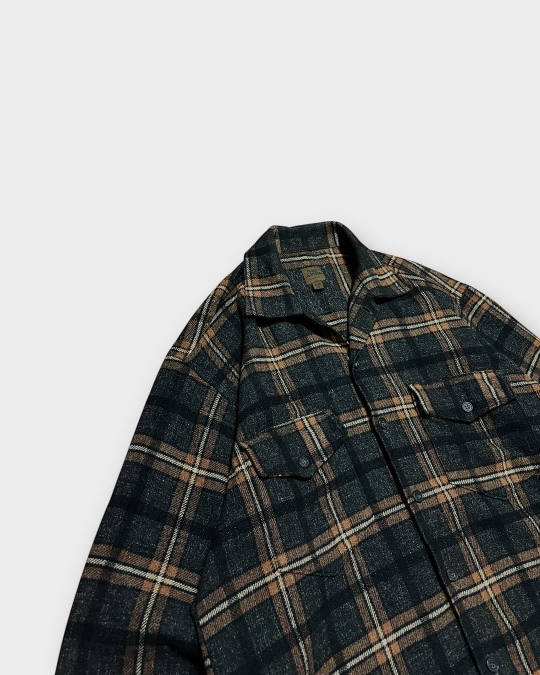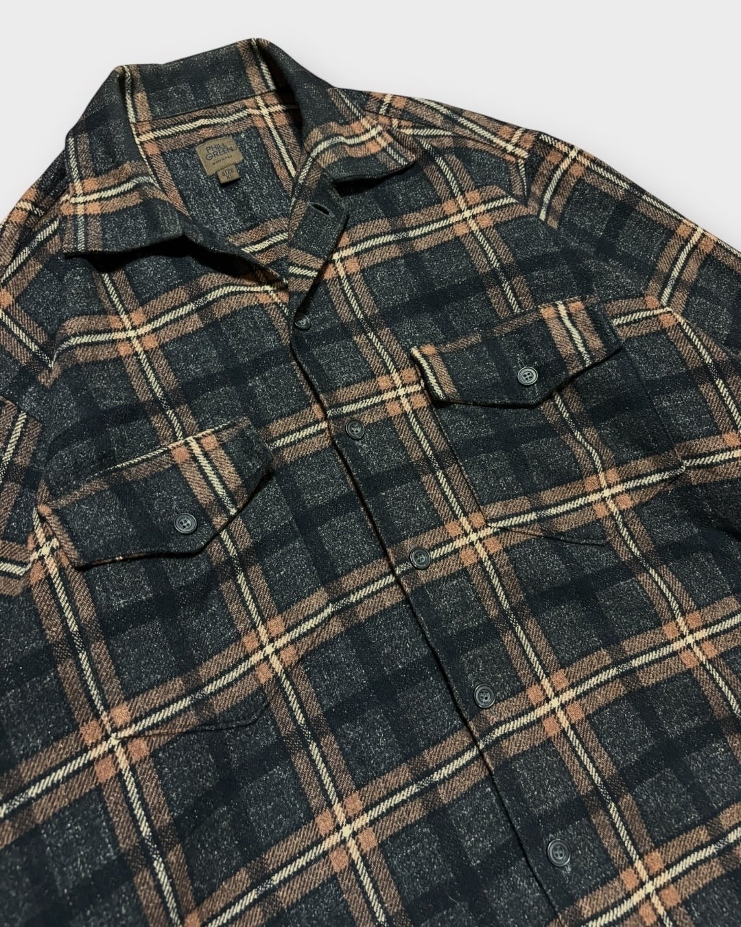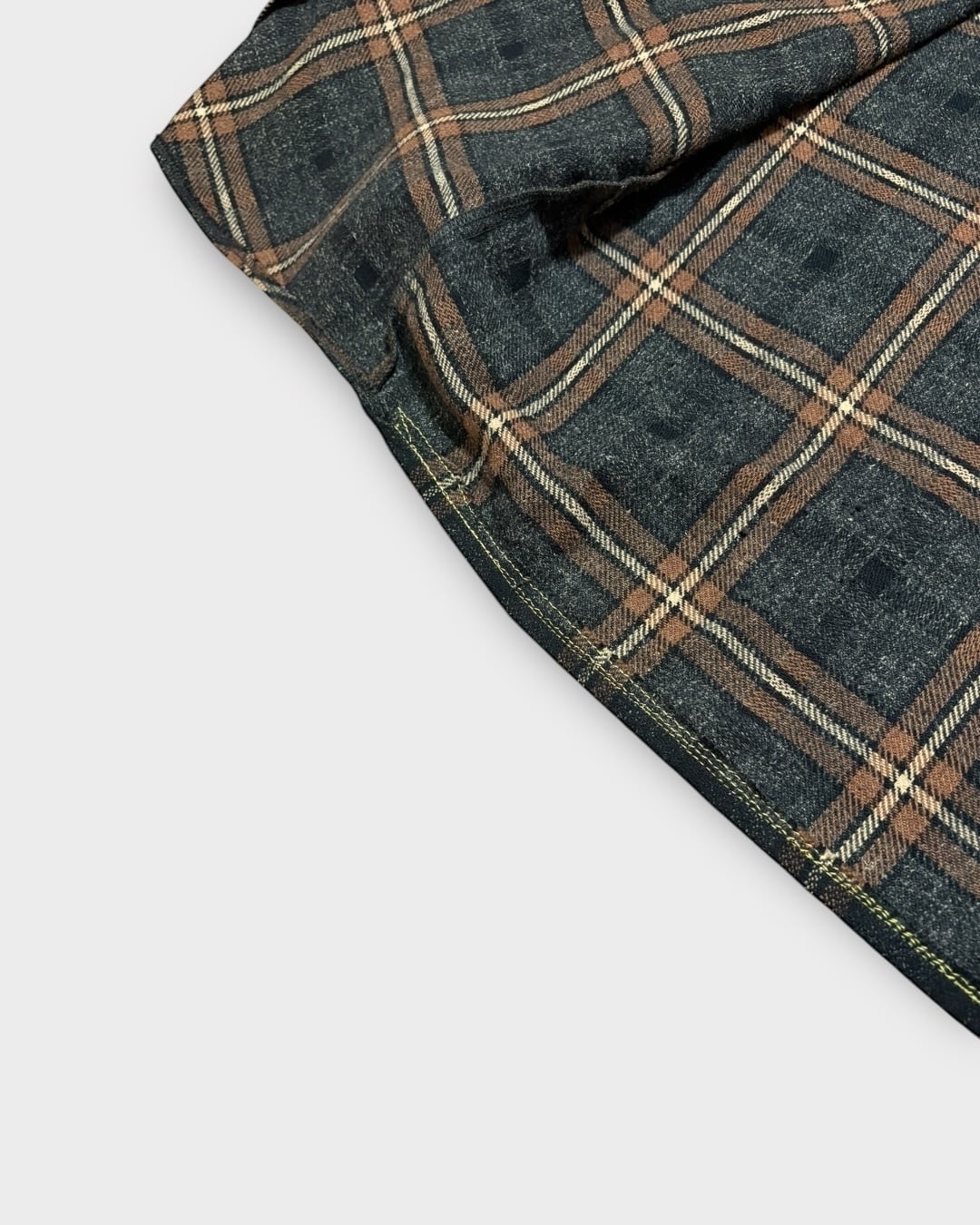 【Used】“PHIL GREEN” Wool Blend Open Collar Check Shirt MADE IN ITALY