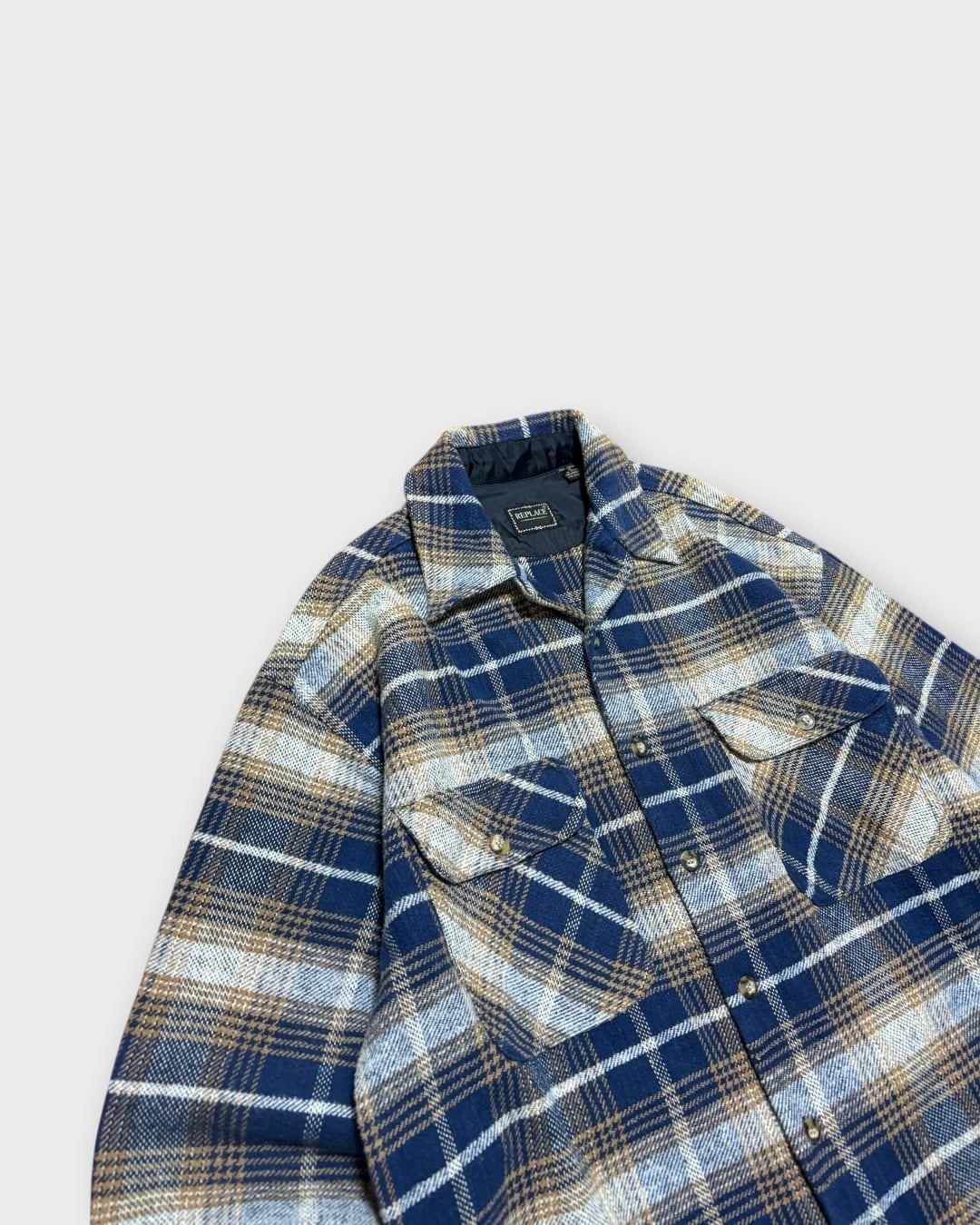 【VINTAGE】1990’s “REPLACE” Heavy Flannel Open Collar Shirt