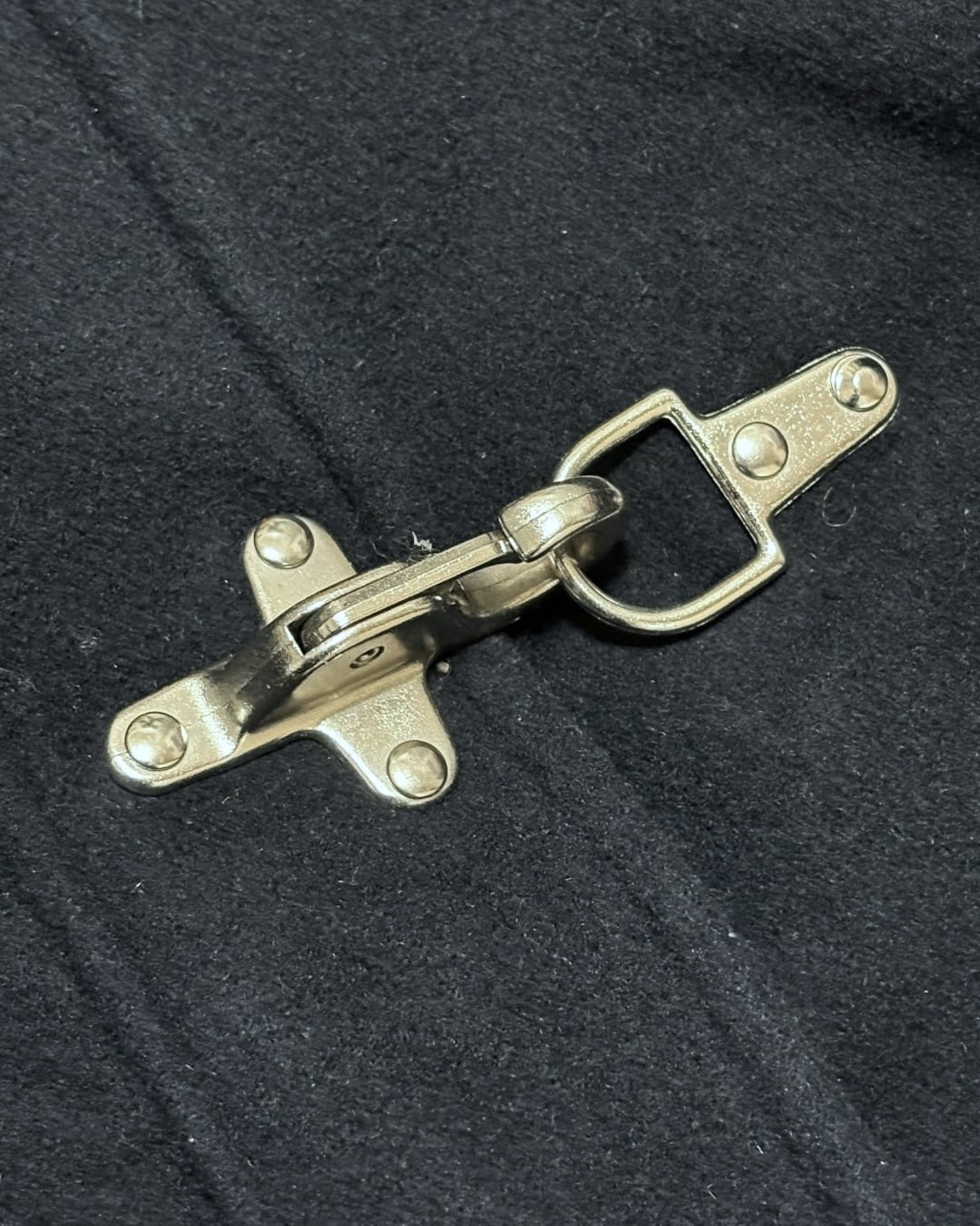 フロントには重厚感のあるファイヤーマンフックを採用し、内側にはジップを備えた実用的な構造です。