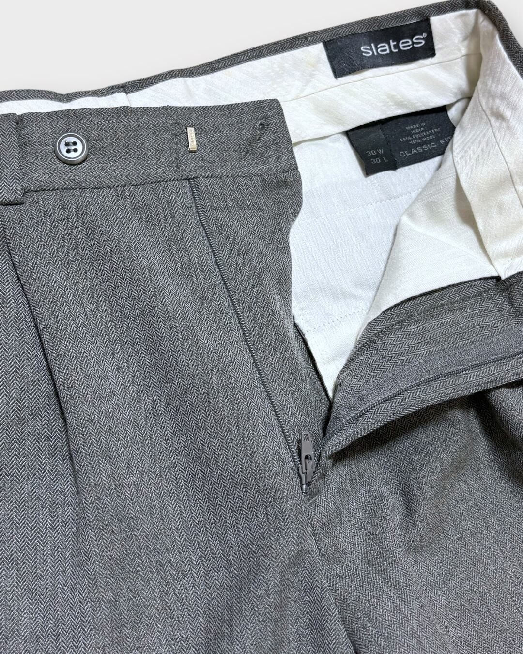 【Used】"Slates"Gray Herringbone 2Tuck Slacks W30 L30