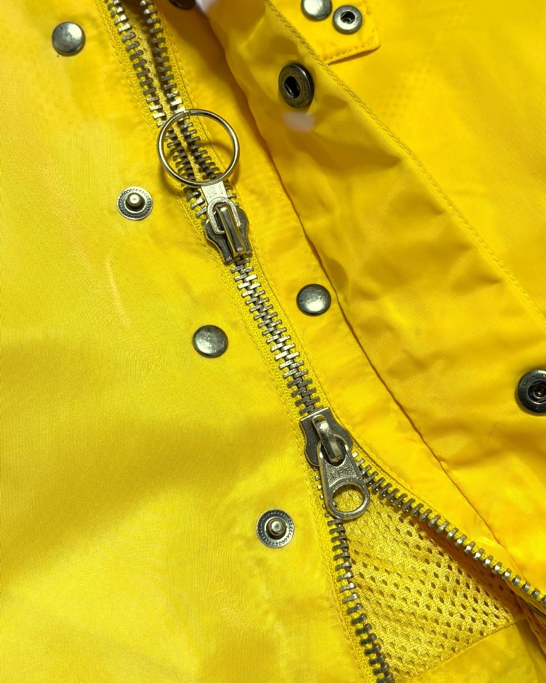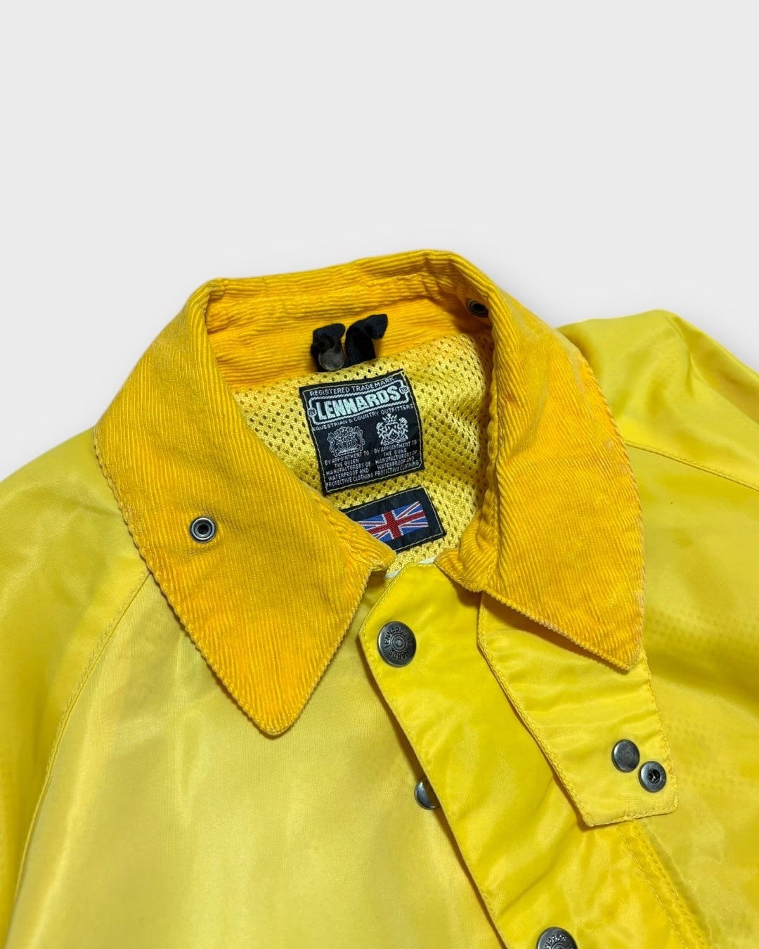 発色の良いイエローに、コーデュロイ襟の切替が効いた一着です。