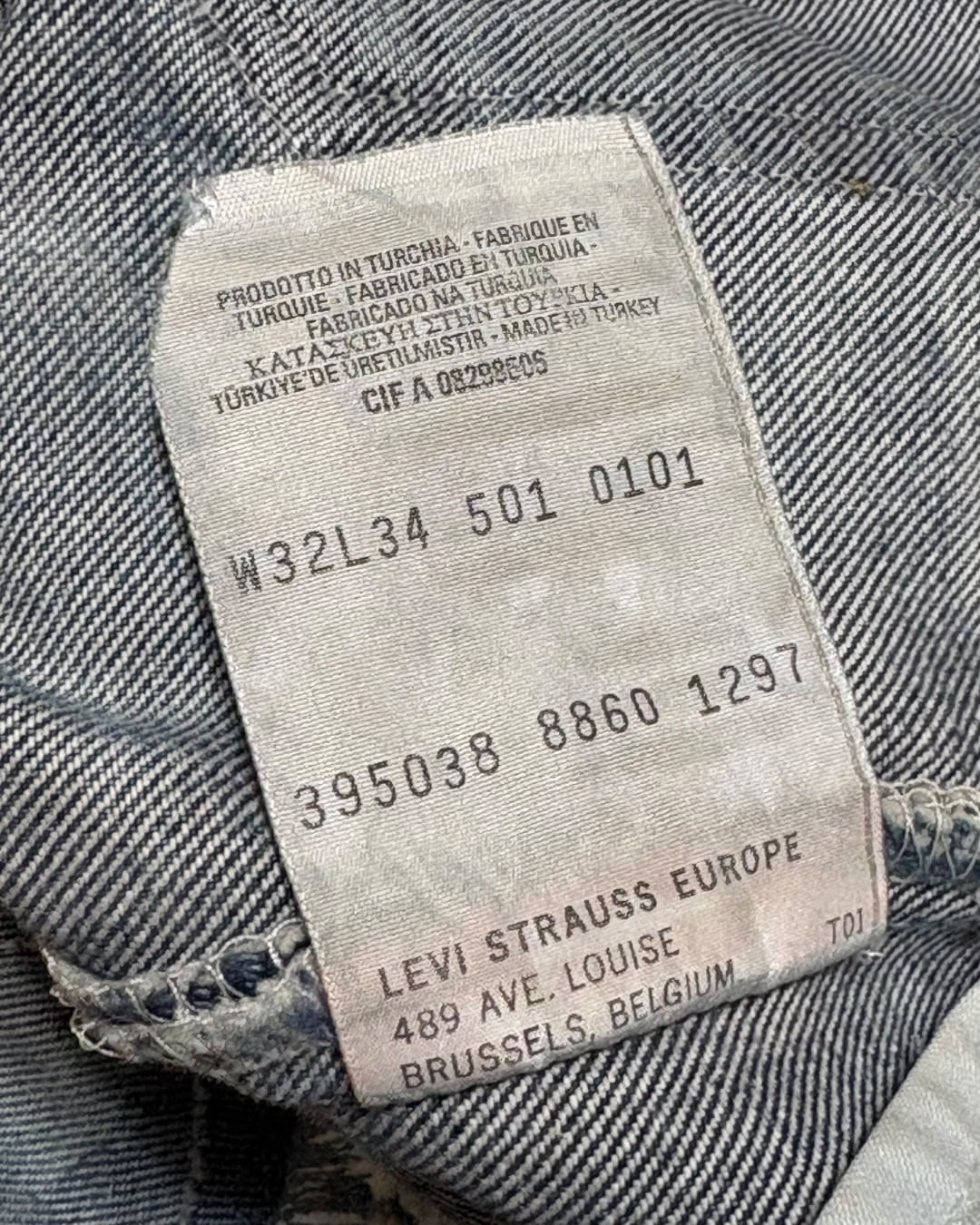 Levi’sのユーロ規格501、1990年代のデニムパンツ。