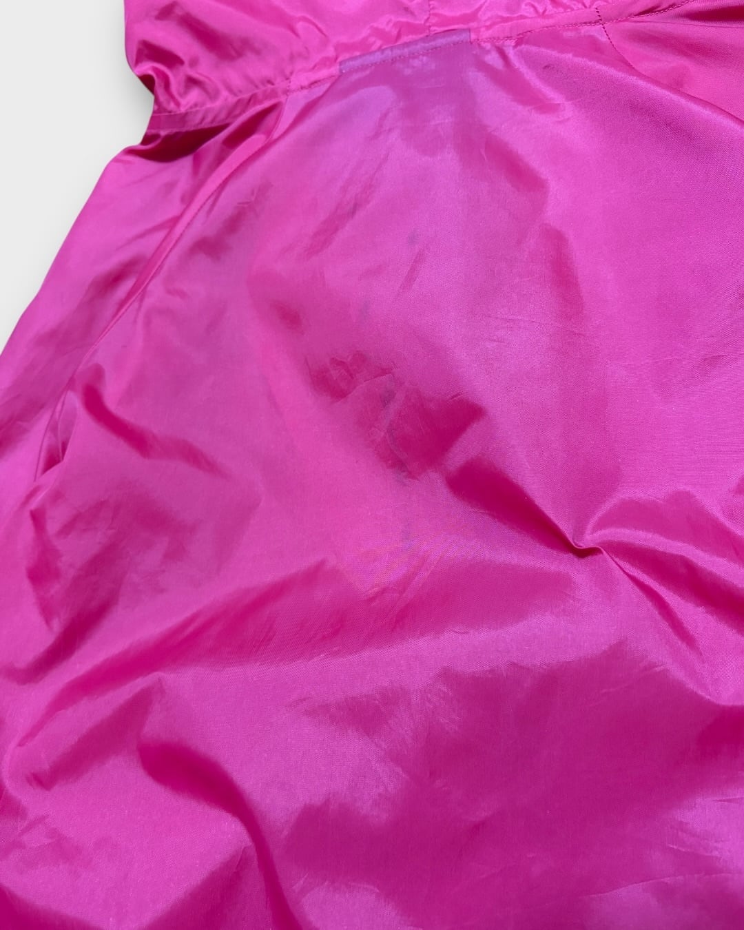 発色の良いピンクカラーが印象的で、スタイリングの主役になる一着です。