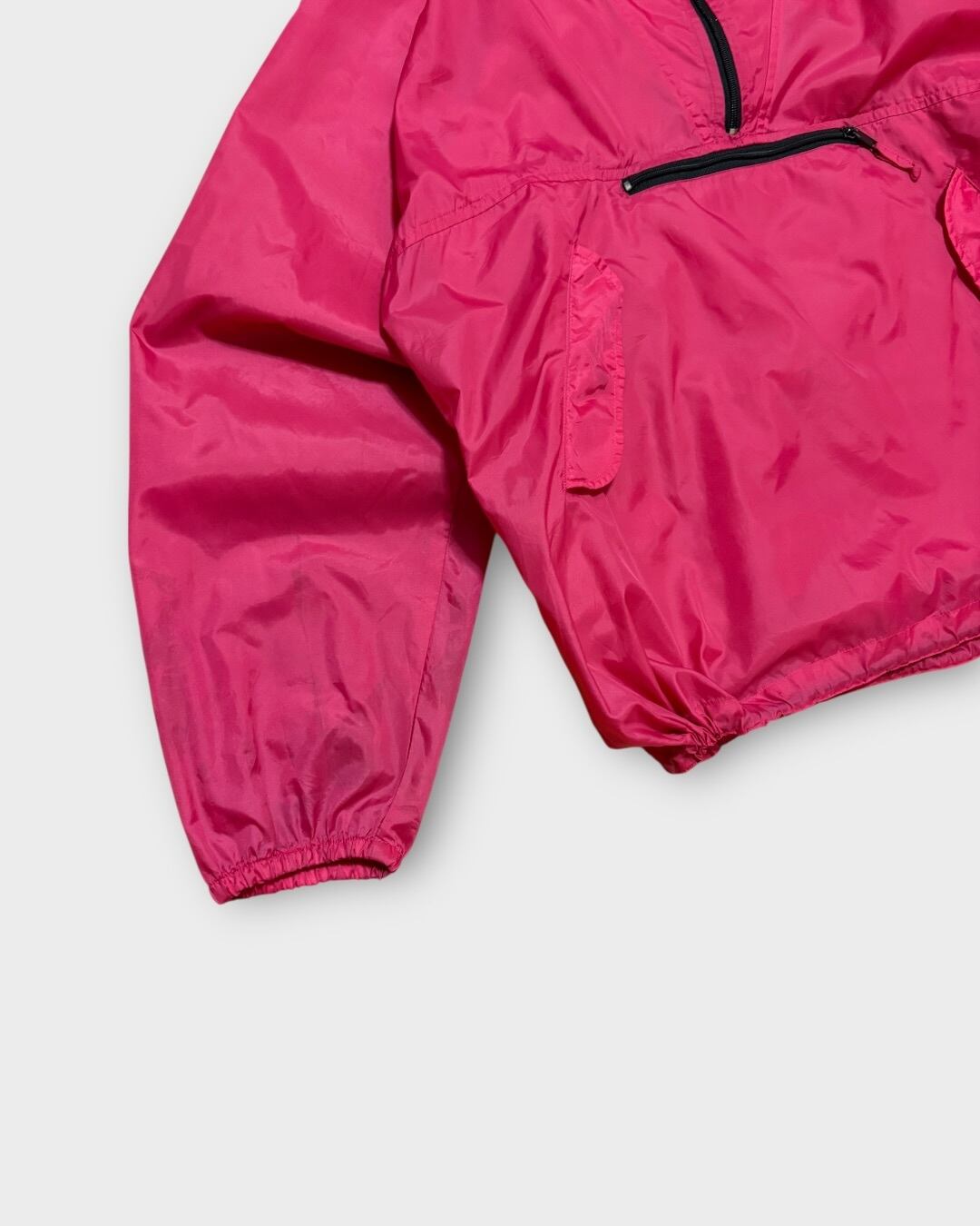 軽やかなナイロン素材に、ハーフジップ仕様、フロントポケット、裾のドローコードと、