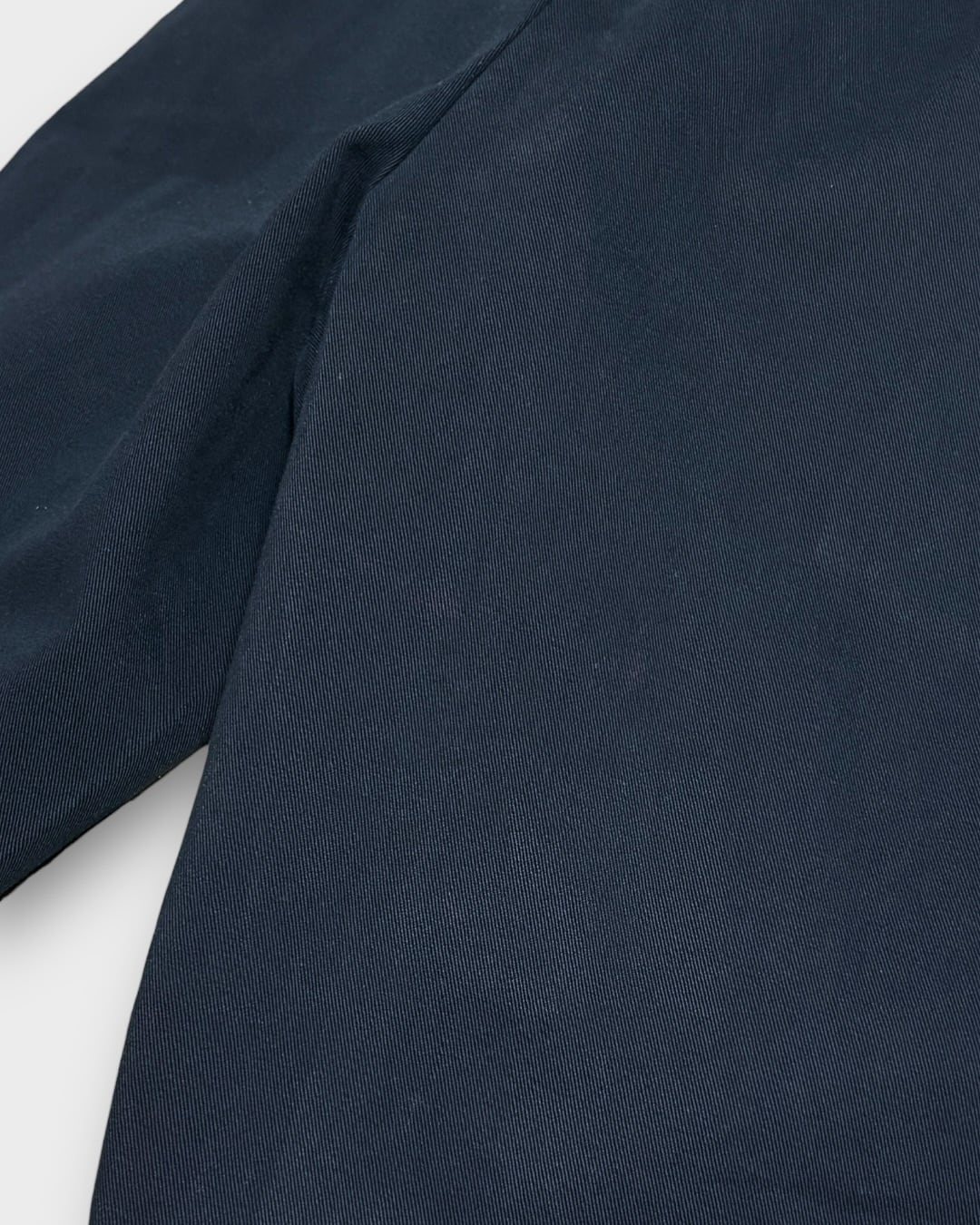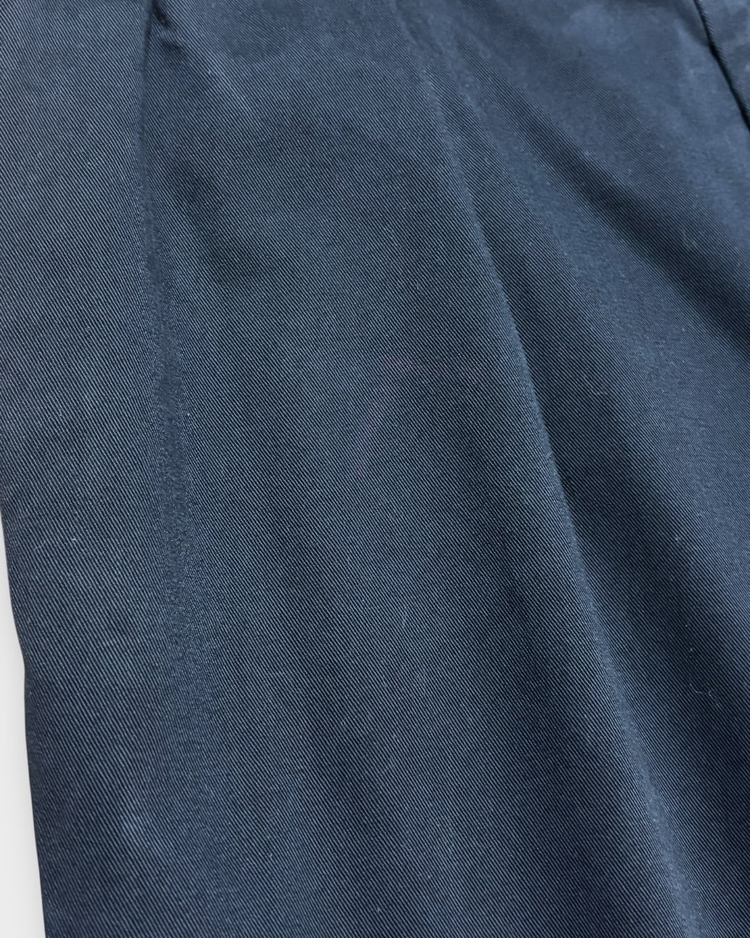 コットン100%のしっかりとした生地感に、ネイビーカラーの落ち着いた表情が合わさり、