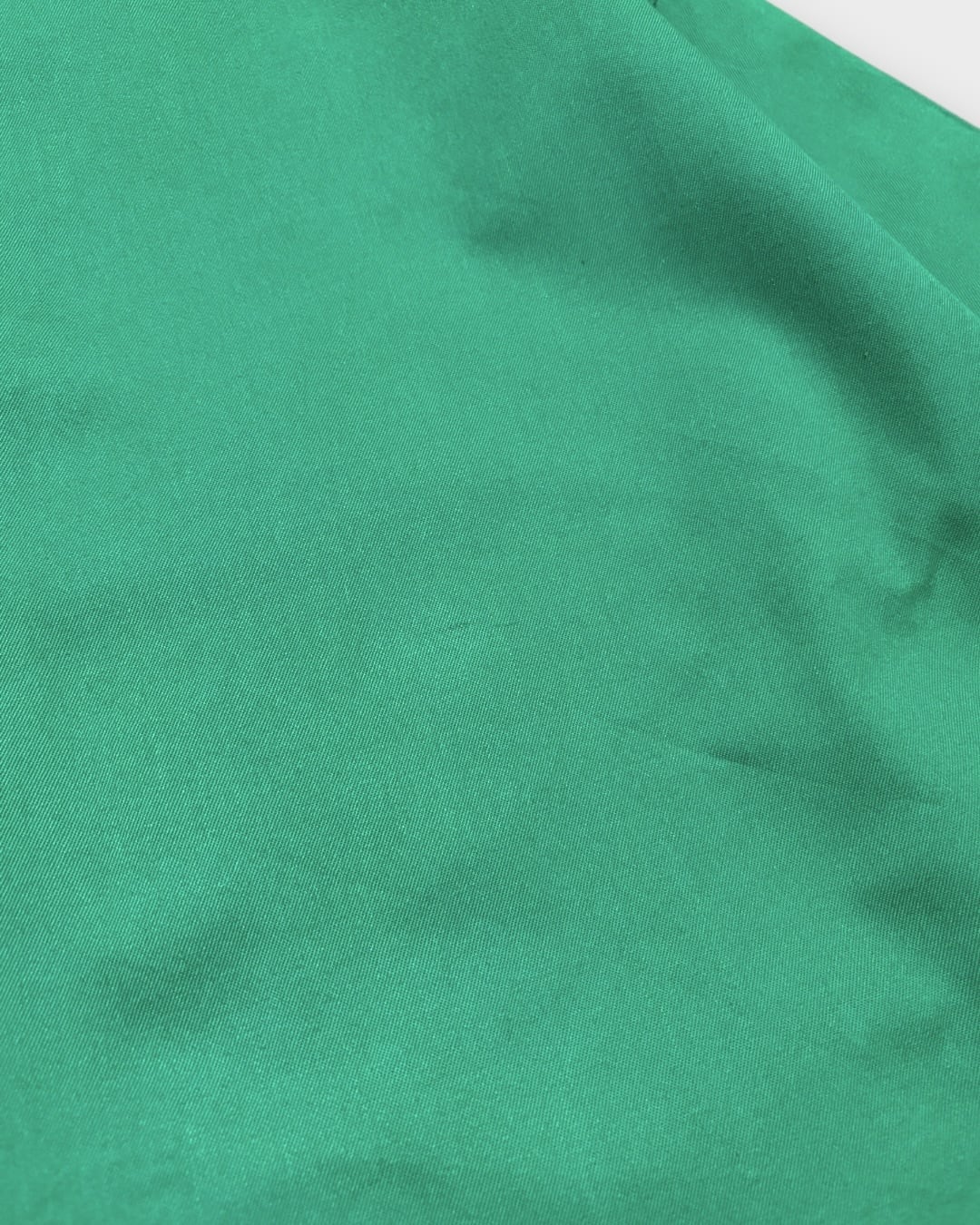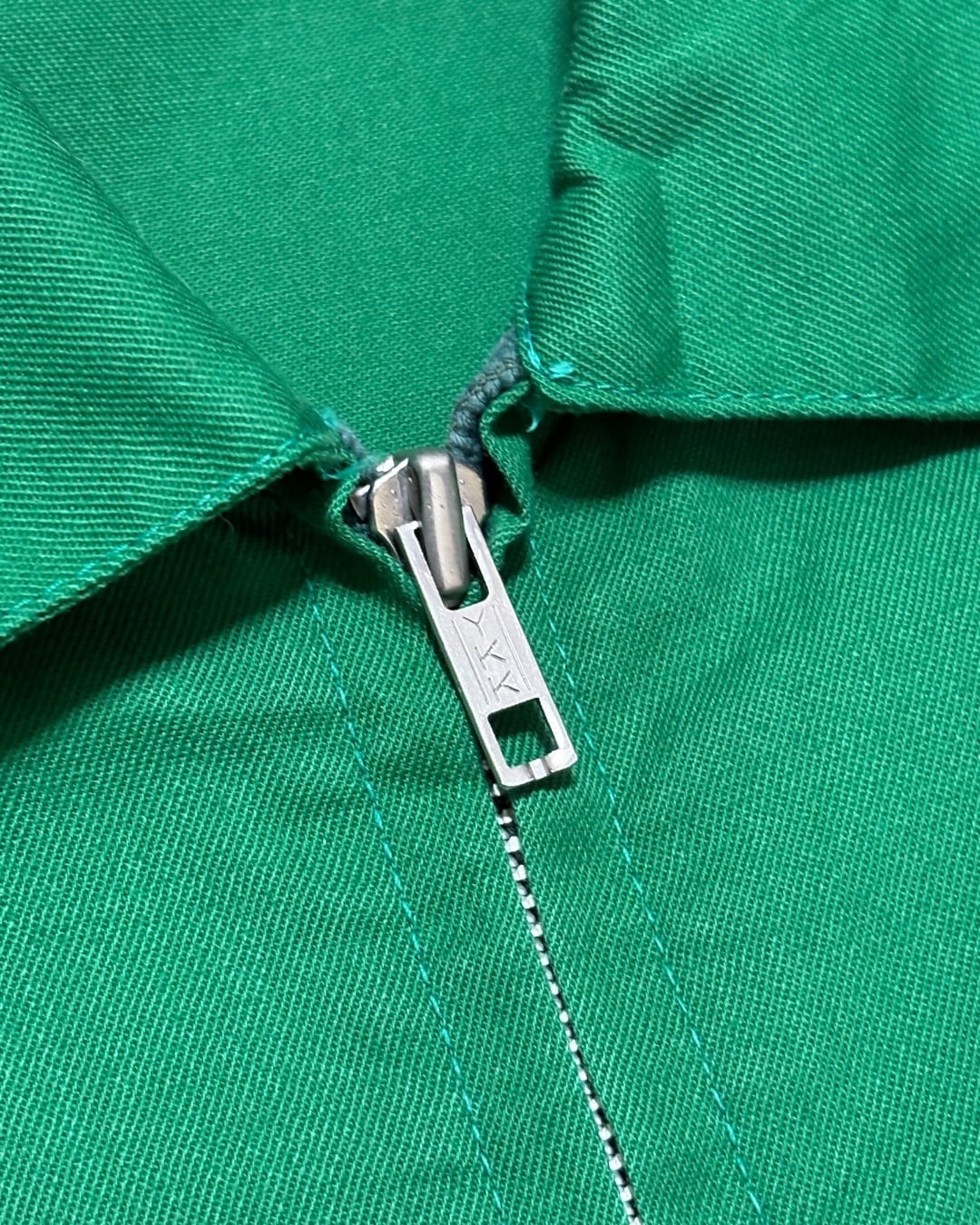 シンプルで無駄のないデザインに、発色の良いグリーンカラーが印象的な一着です。