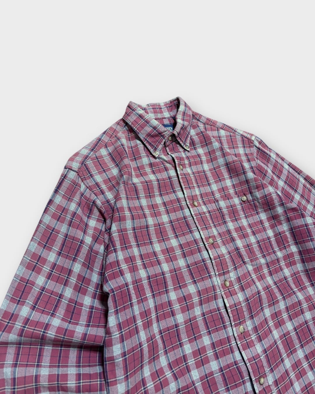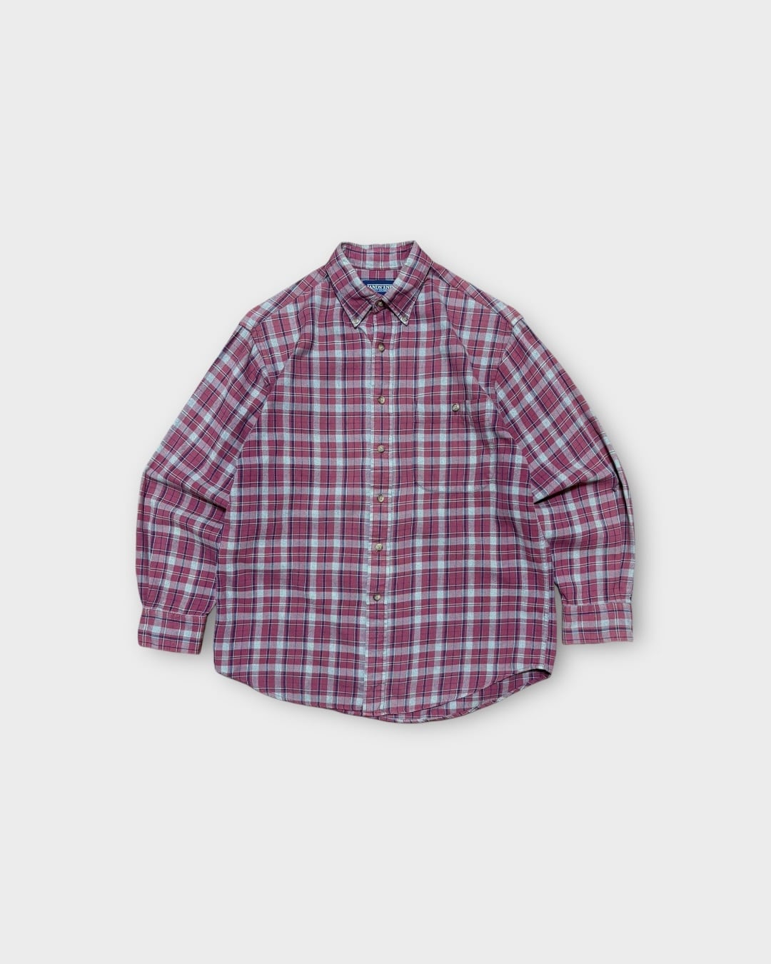 【VINTAGE】1990’s “Lands’ End” Light Flannel Plaid Button Down Shirt