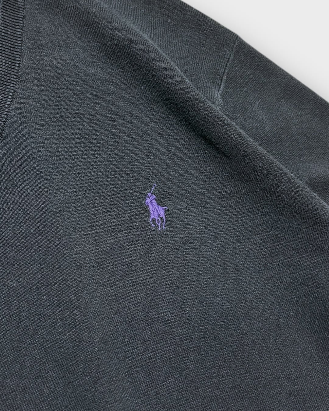 カラーはブラックをベースに、胸元のパープルポニー刺繍が程よいアクセントに。