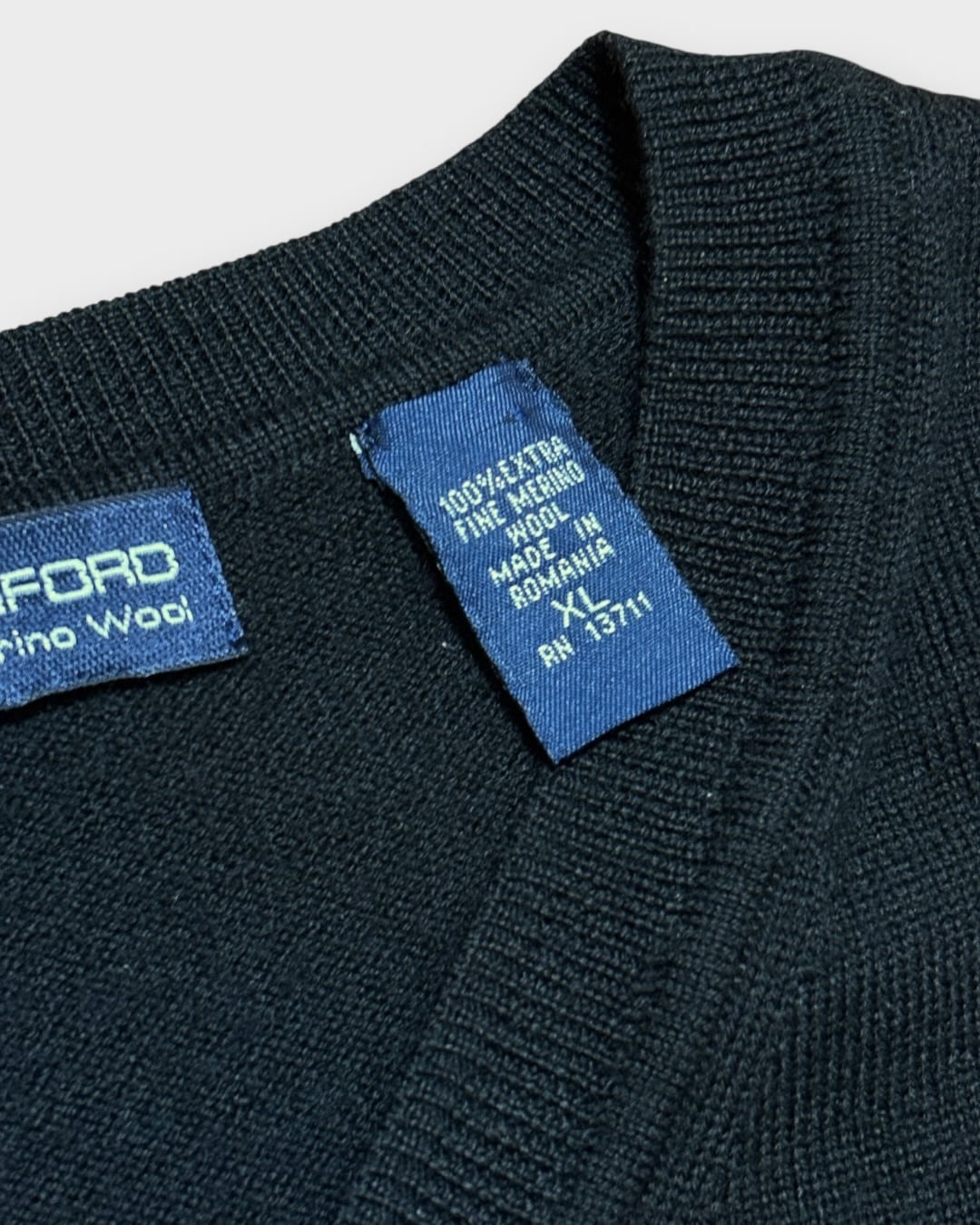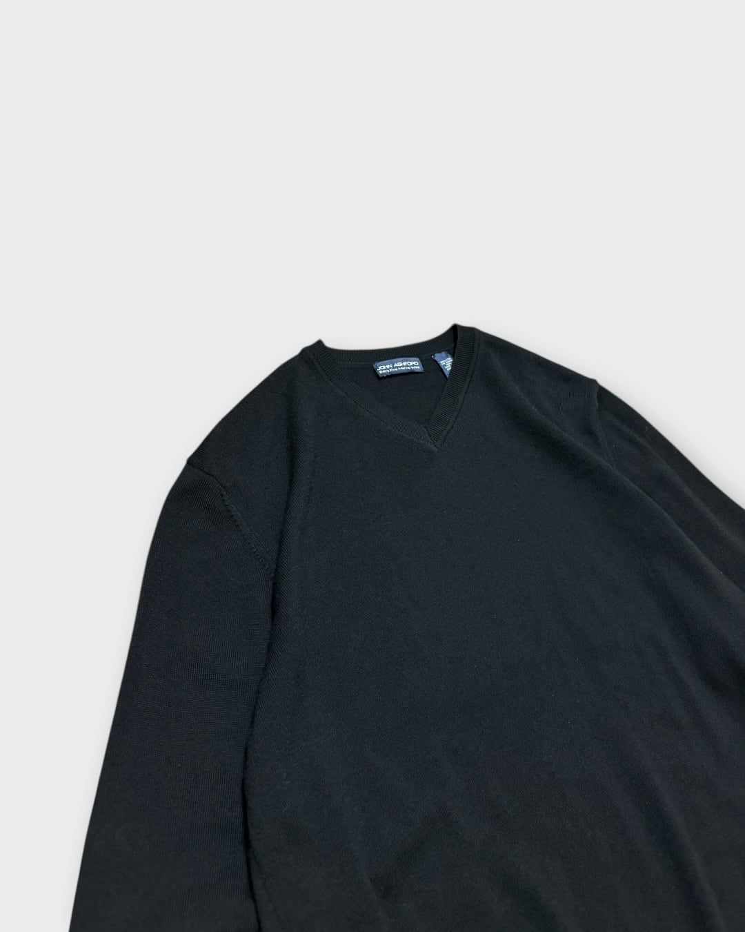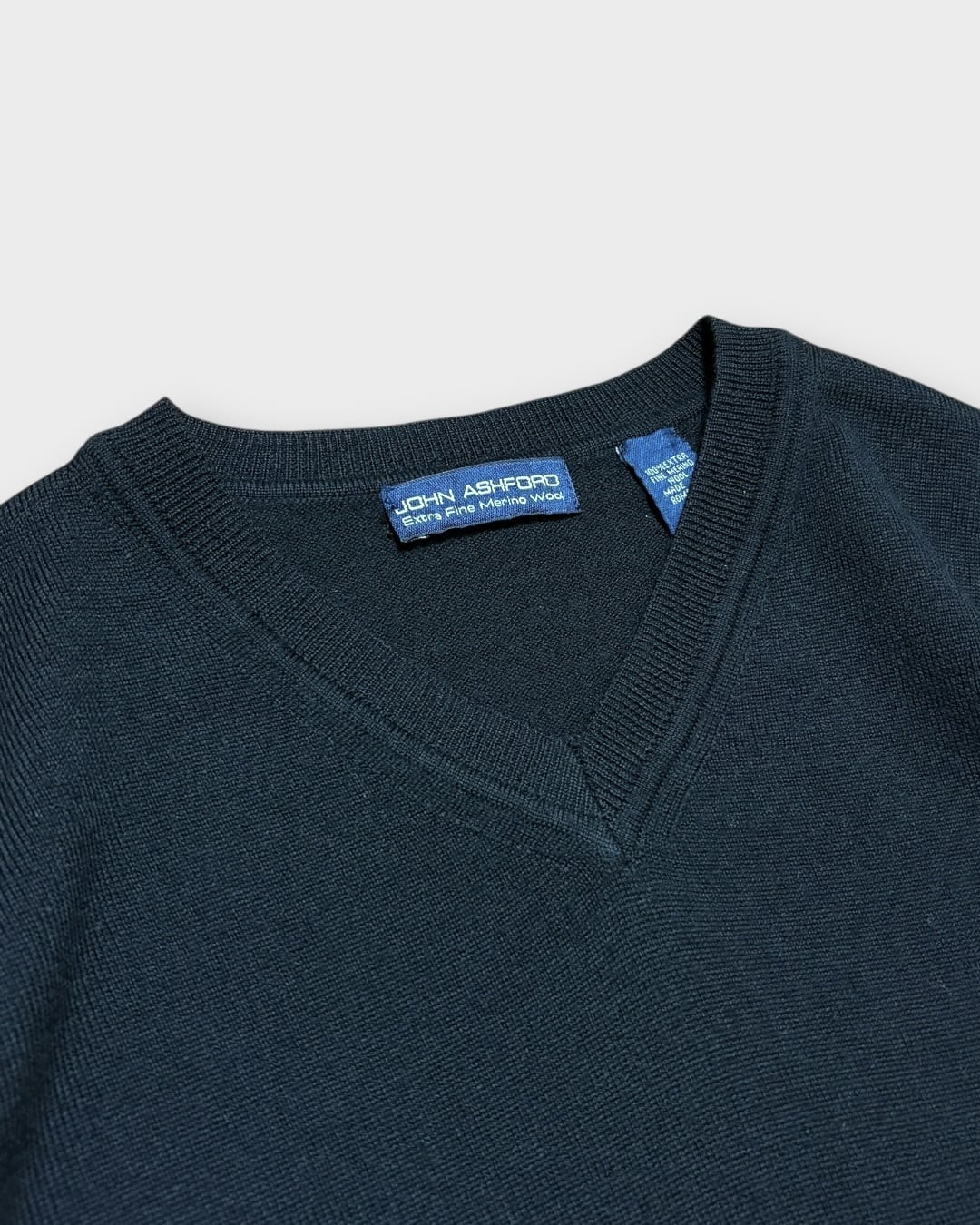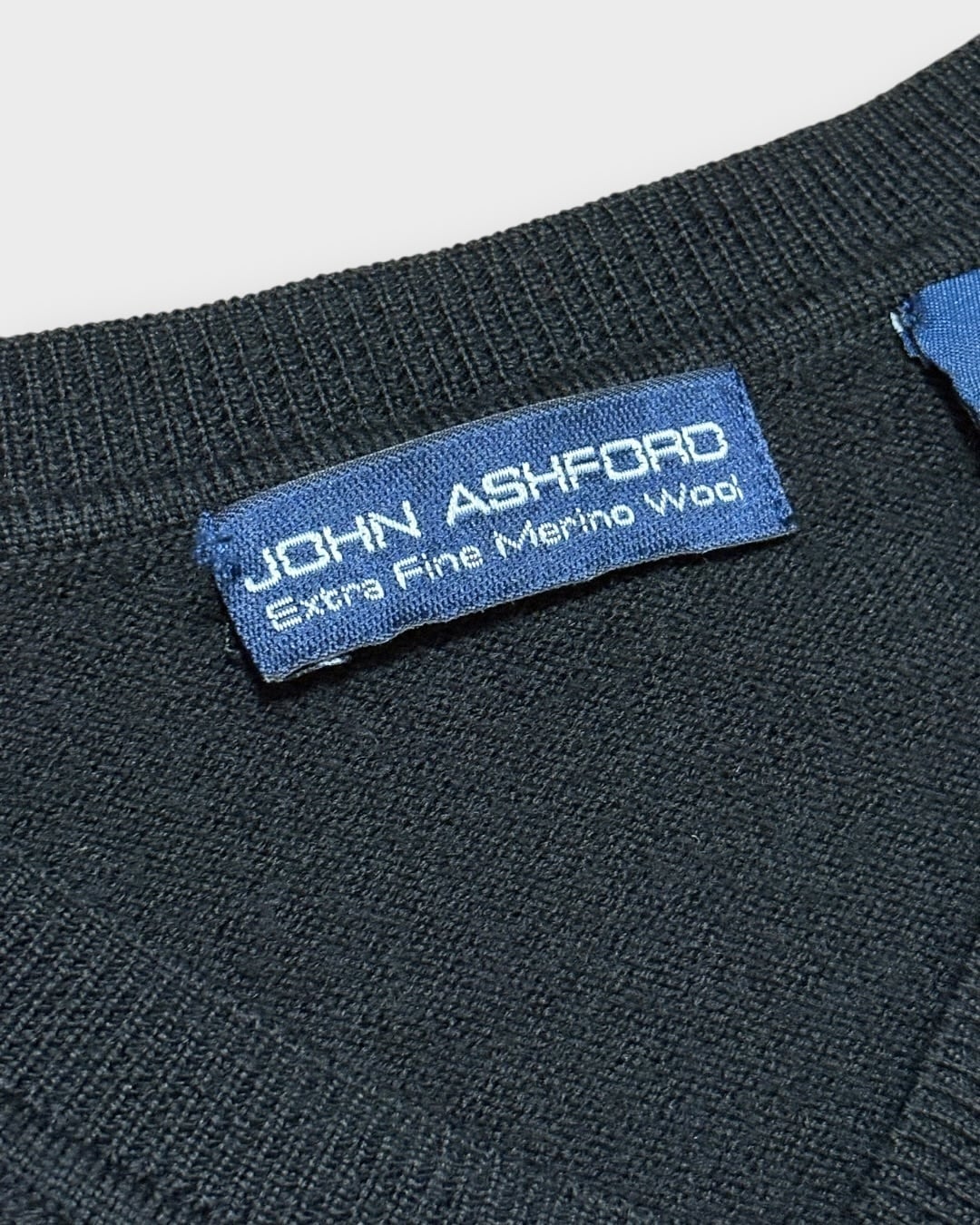 【Used】“JOHN ASHFORD” Extra Fine Merino Wool V-Neck Sweater Black