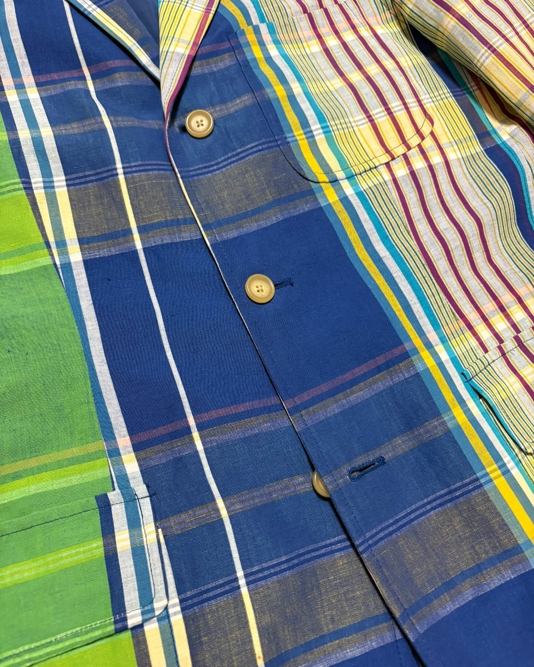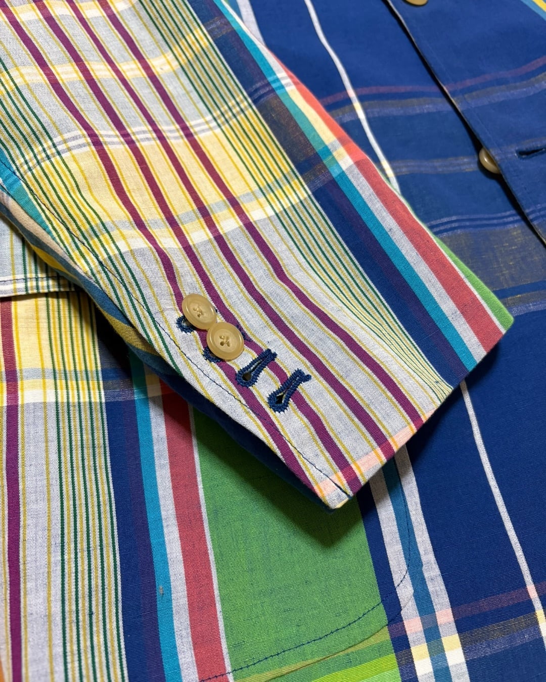 グリーン・ブルーを基調としたマルチカラーのマドラスチェックは、主張がありながらもどこか上品な印象。
