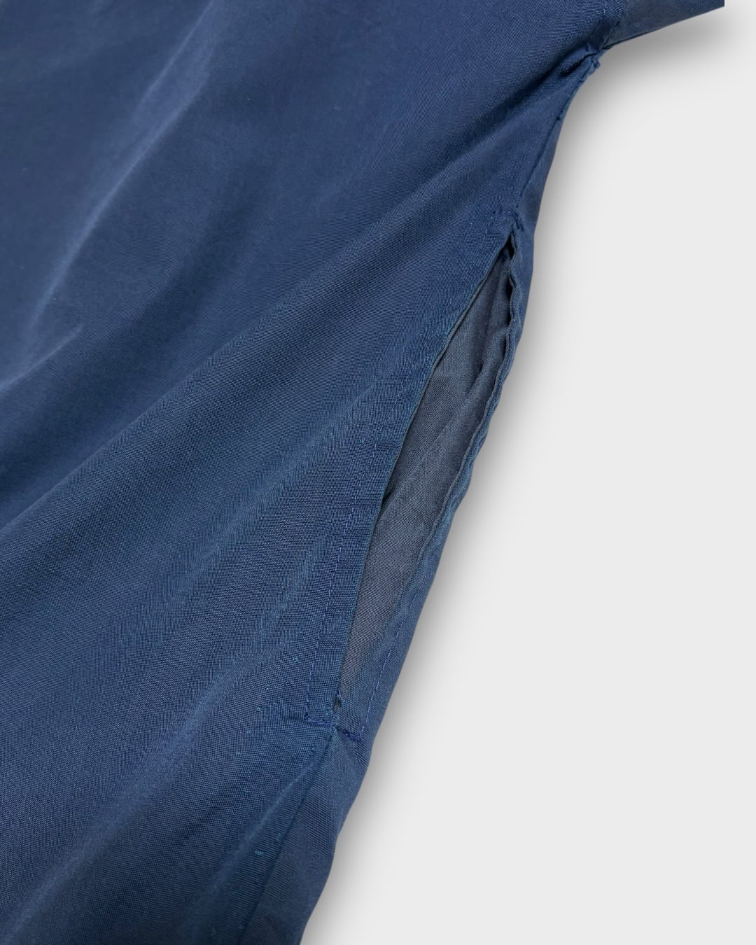 無地のネイビーカラーでありながら、立体的なパターンワークによって存在感のある一着。