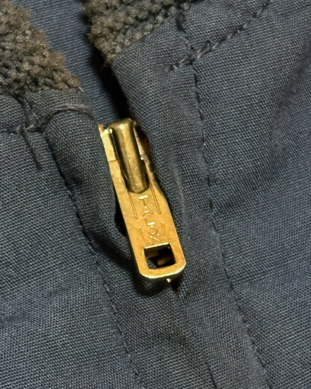 深みのあるダークネイビー無地のボディに、ヴィンテージ特有の風合いが感じられる一着です。