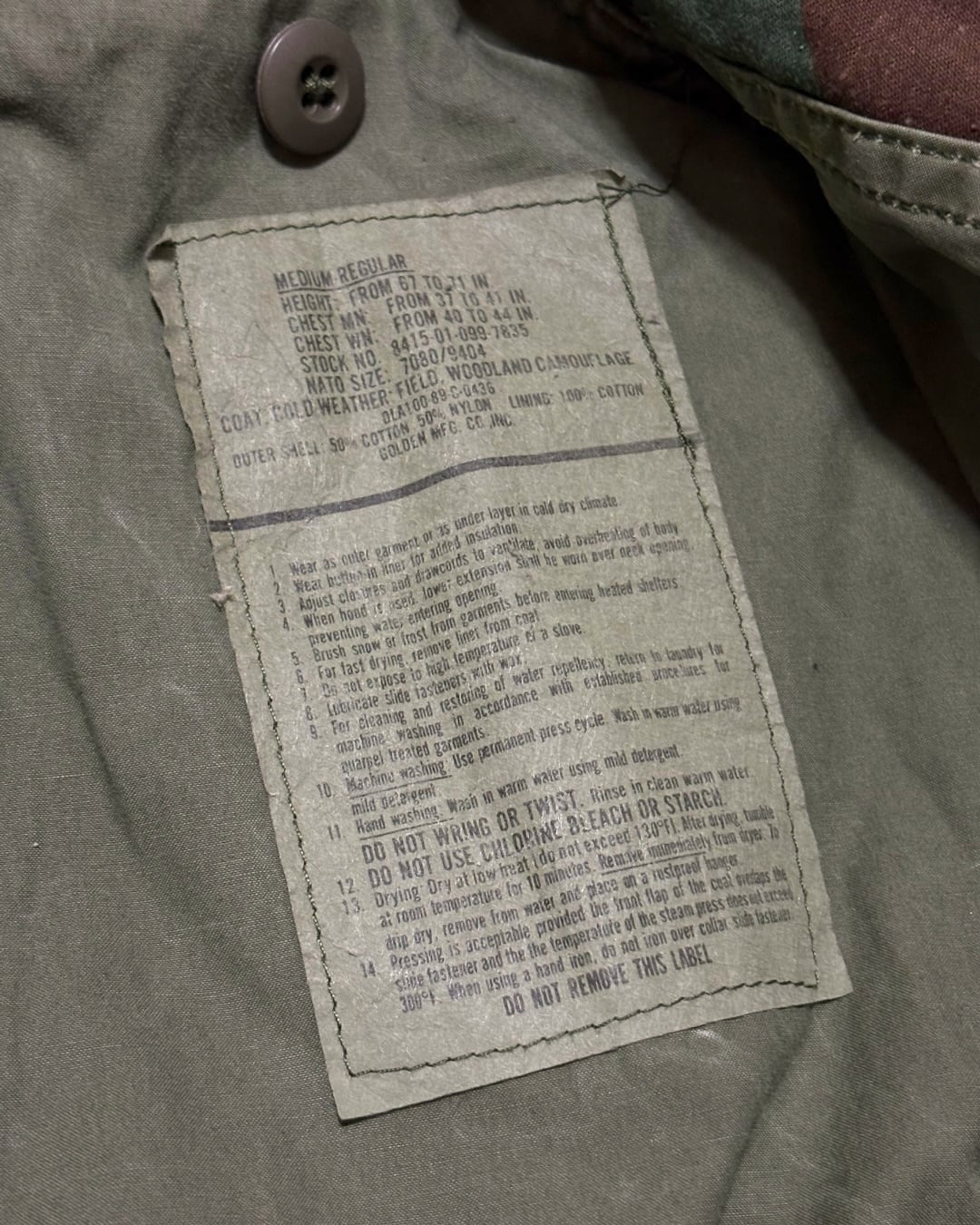 1989年コントラクト、U.S. ARMYのM-65フィールドジャケット。
