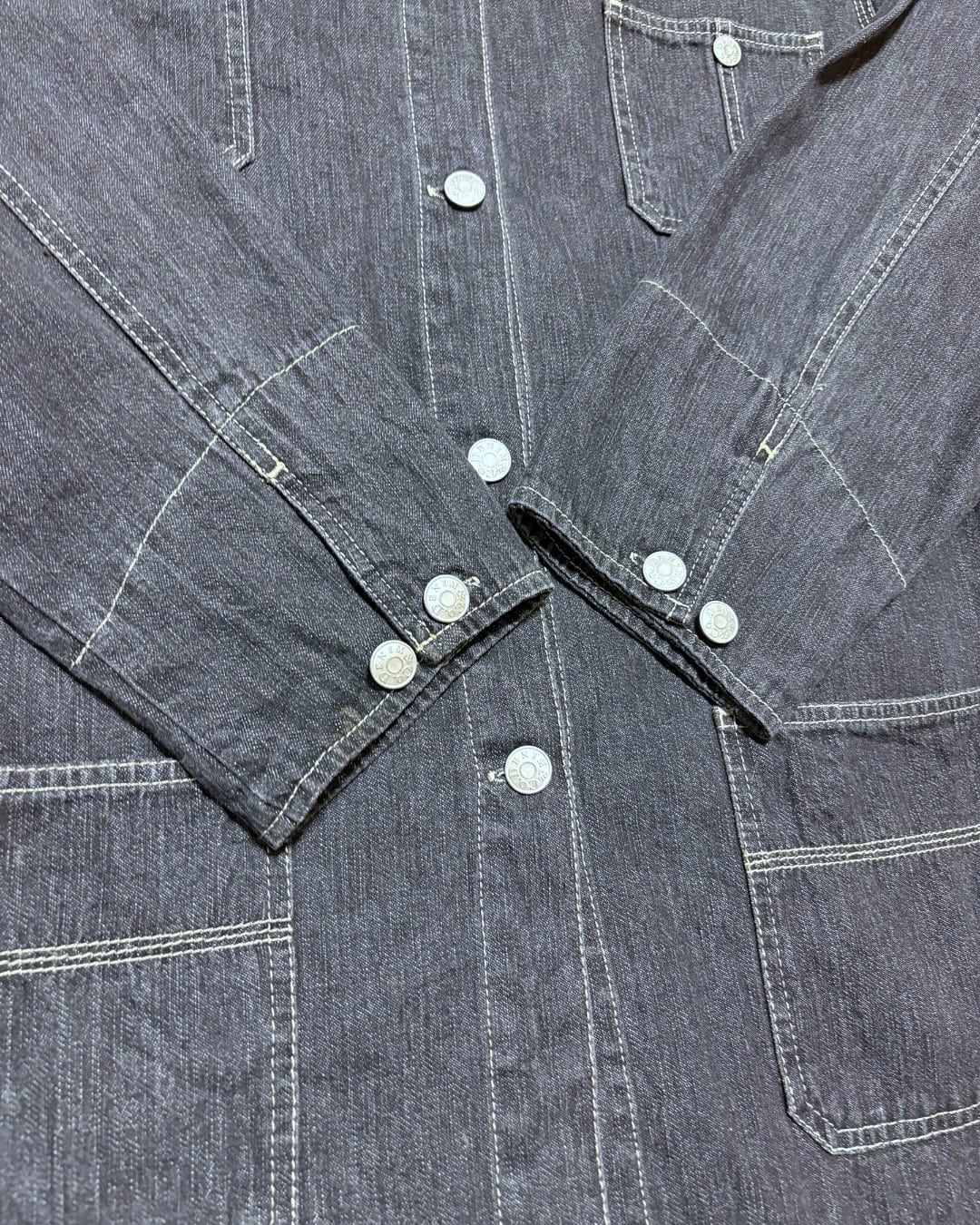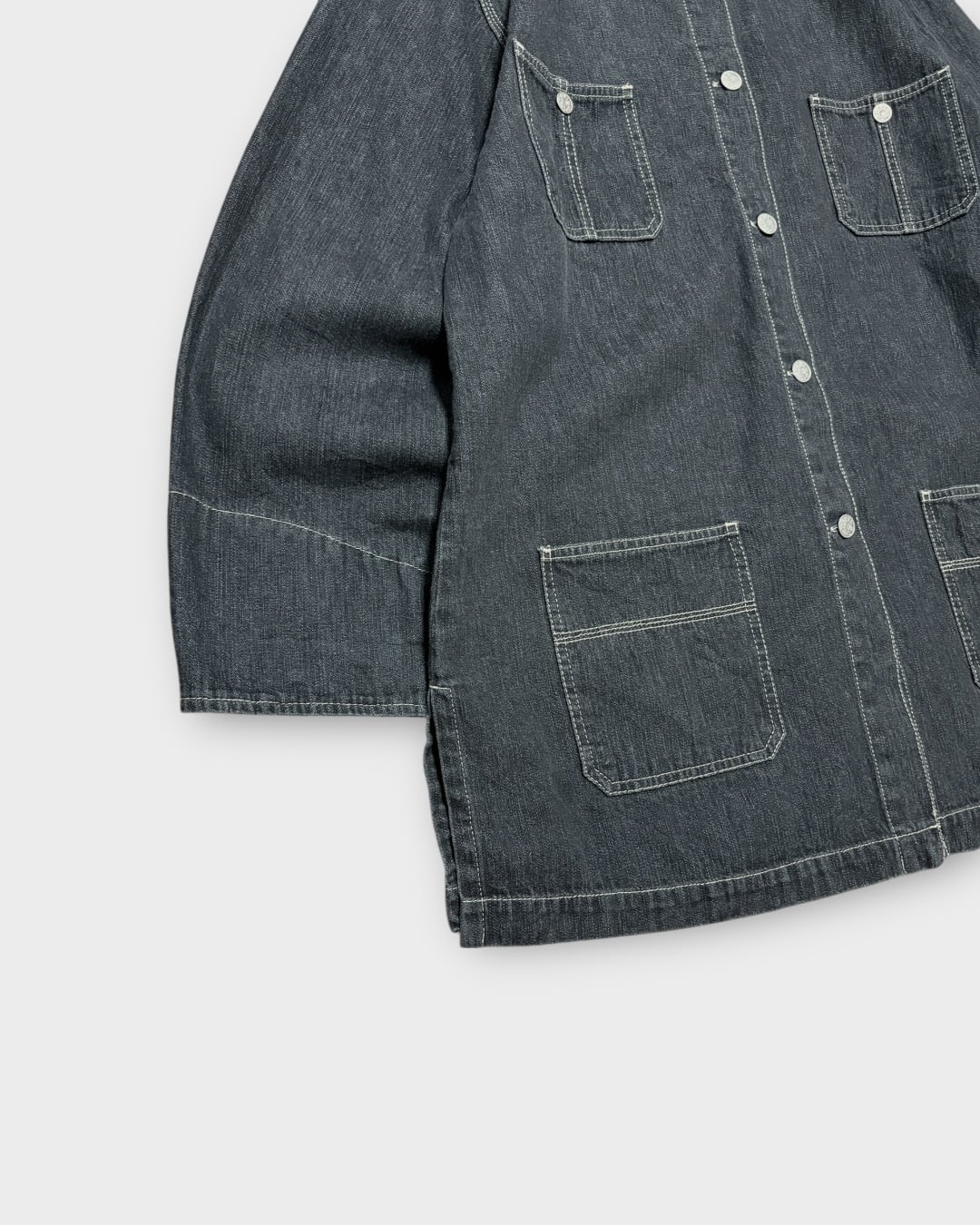 フロントの4ポケット仕様で、定番のカバーオールらしい雰囲気を感じさせるバランスの良いデザインです。