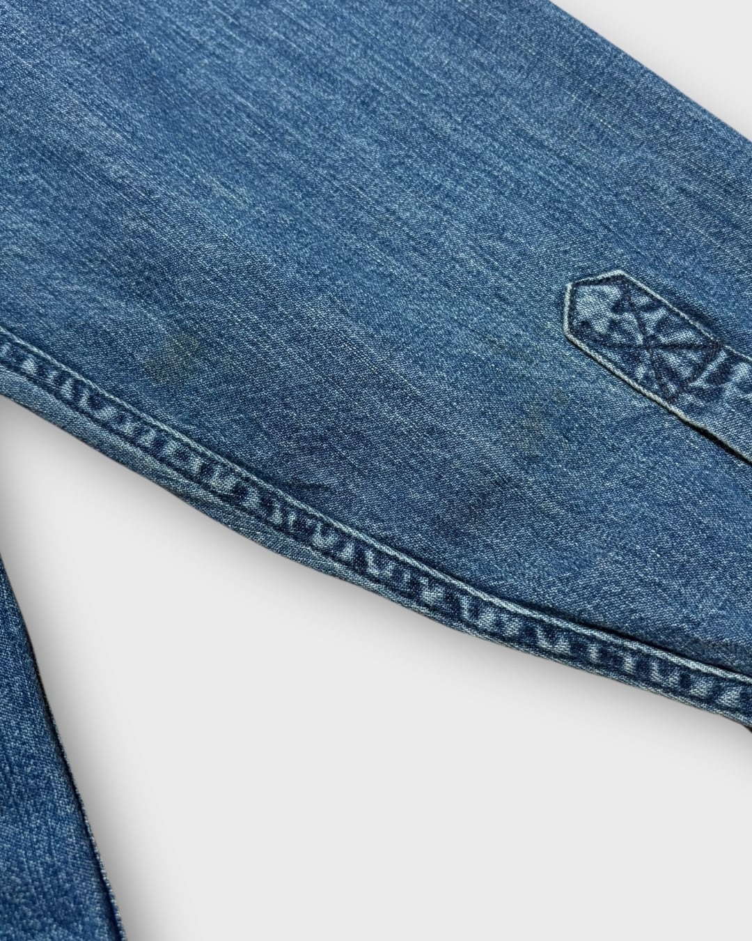 程よくフェードしたインディゴカラーで、雰囲気のある表情が魅力の一枚です。