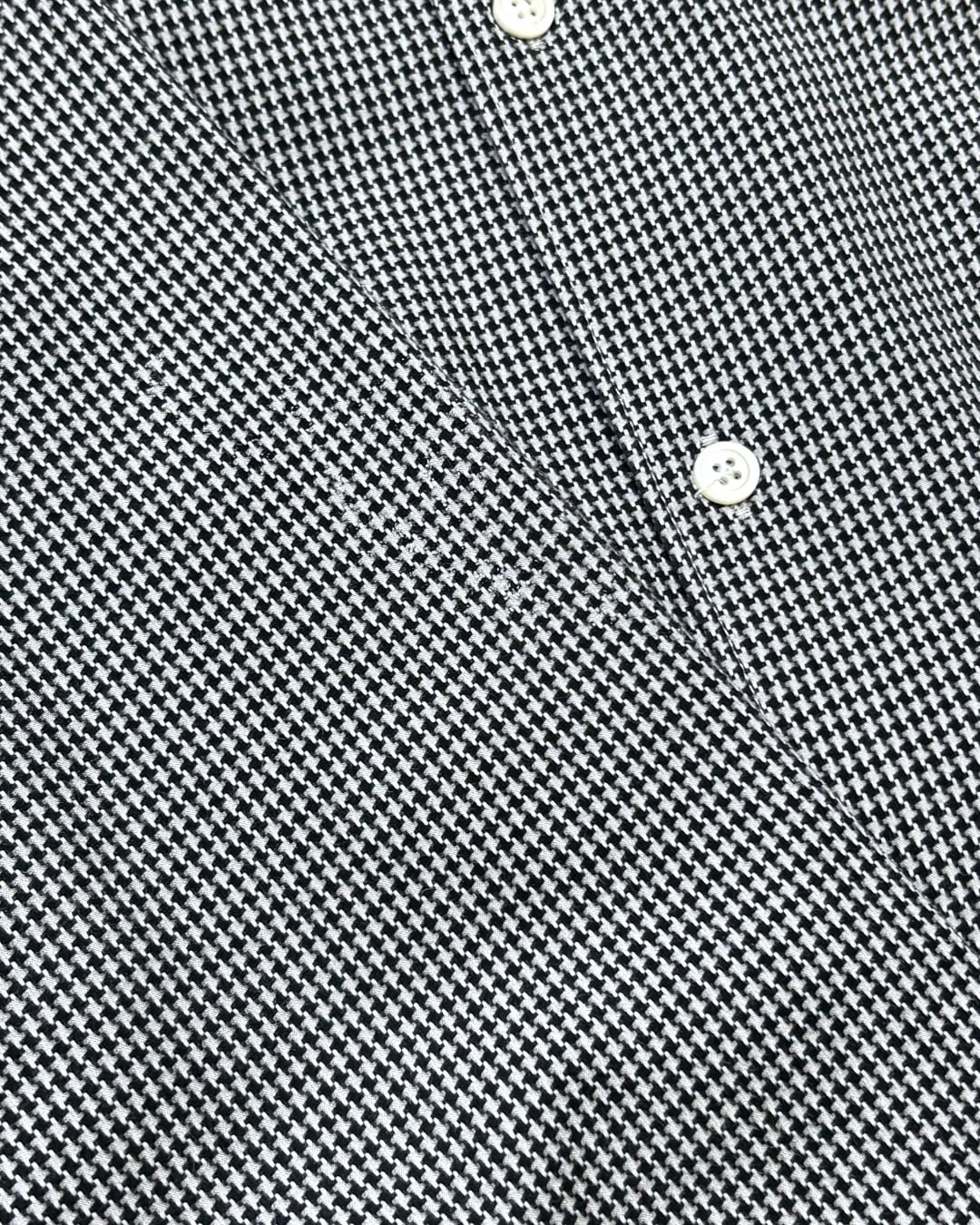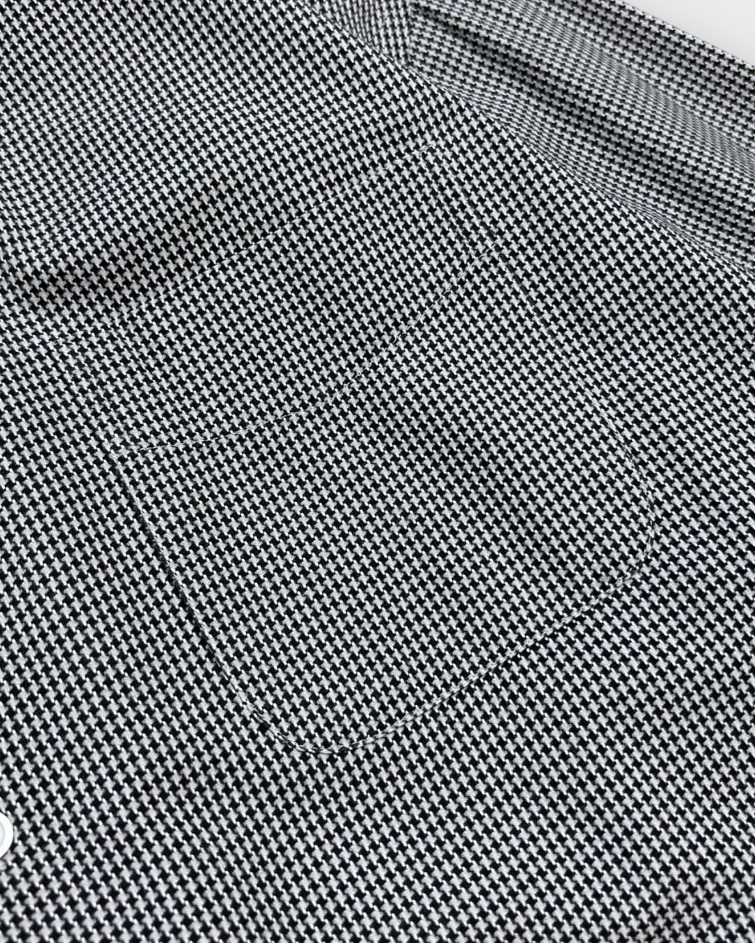細かなハウンドトゥース柄が全体に入った一枚。ブラック×ホワイトのクラシックな配色で、無地感覚で使いながらもさりげなく奥行きを出せる柄です。