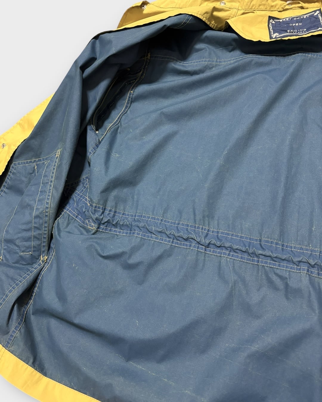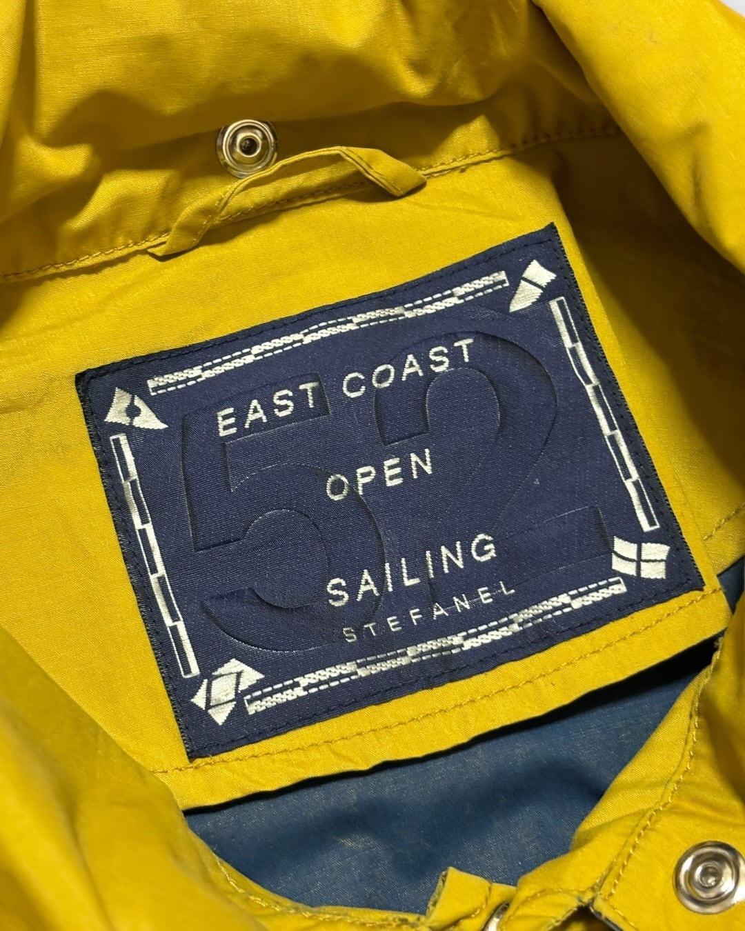 襟内にはフードが収納されており、セーリングウェアらしい実用性も兼ね備えています。
