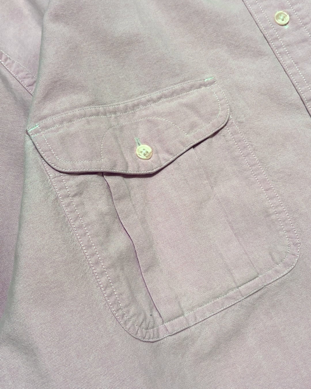 胸にはフラップ付きの少し変わったポケットが配置されており、ベーシックなBDシャツとは違うデザインも魅力。
