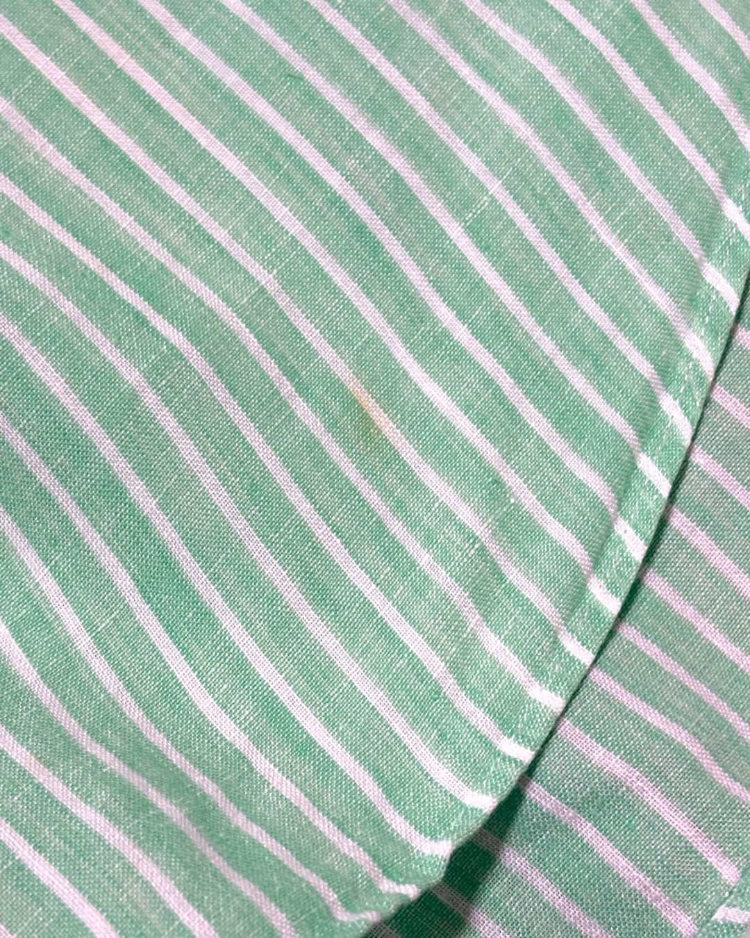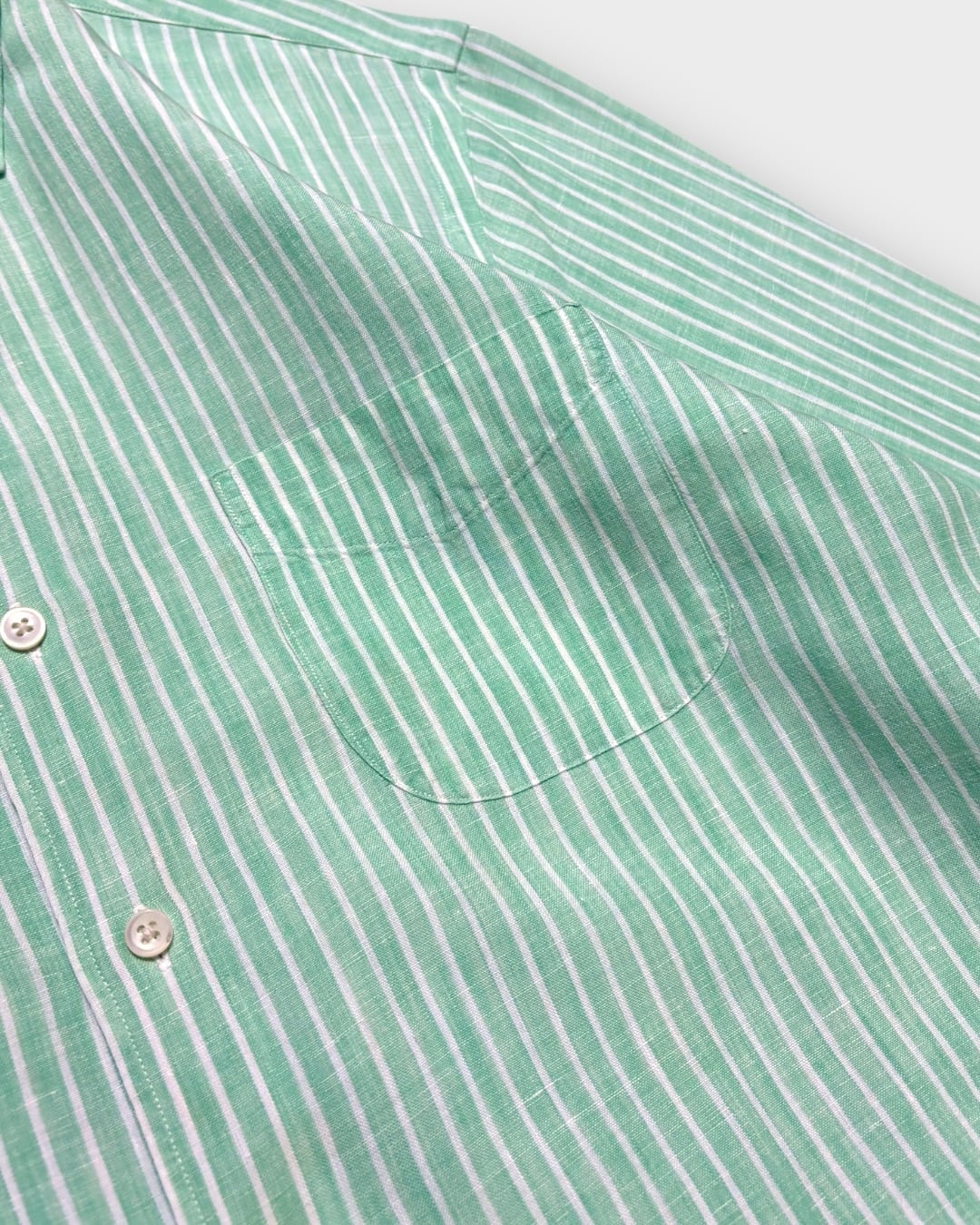 ミントグリーンにホワイトストライプを載せた、春夏らしい軽やかな配色が印象的な一枚です。
