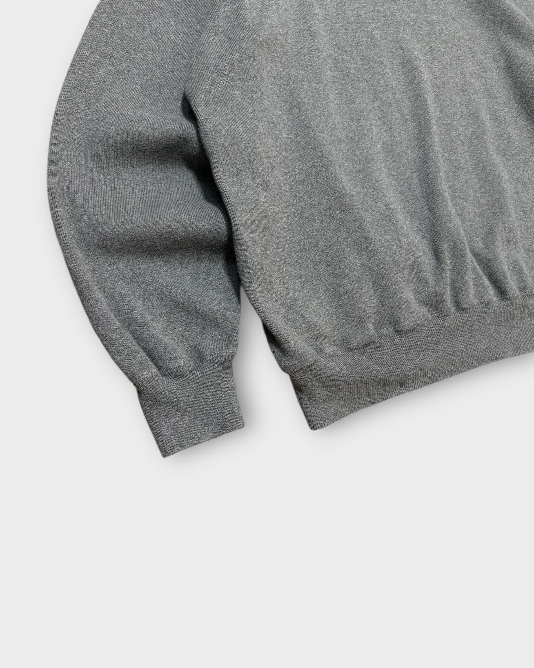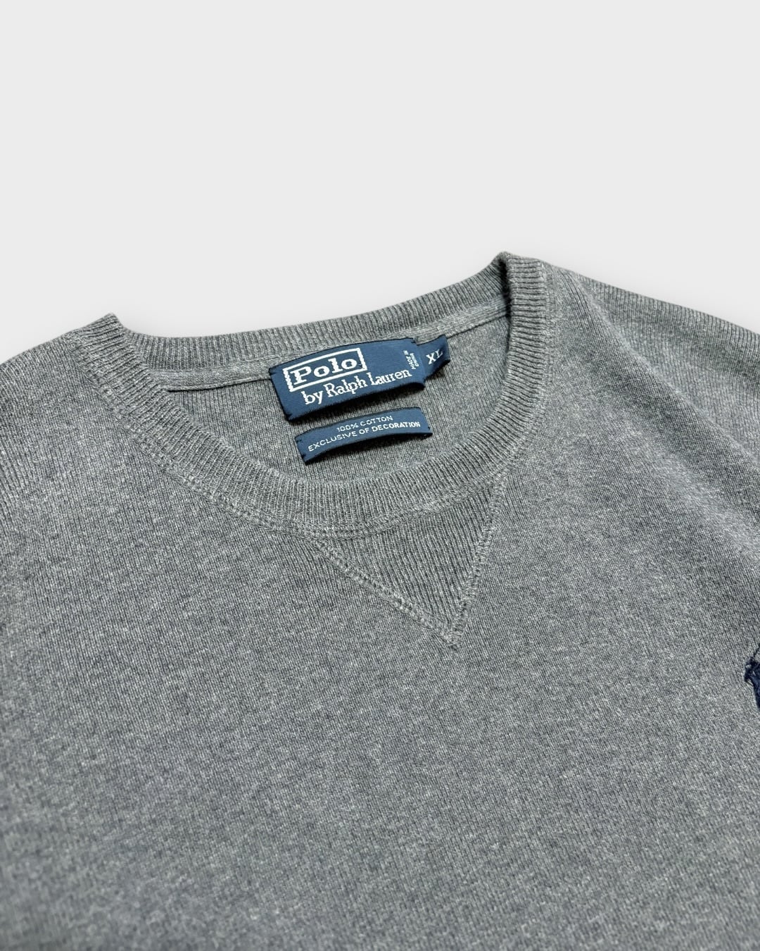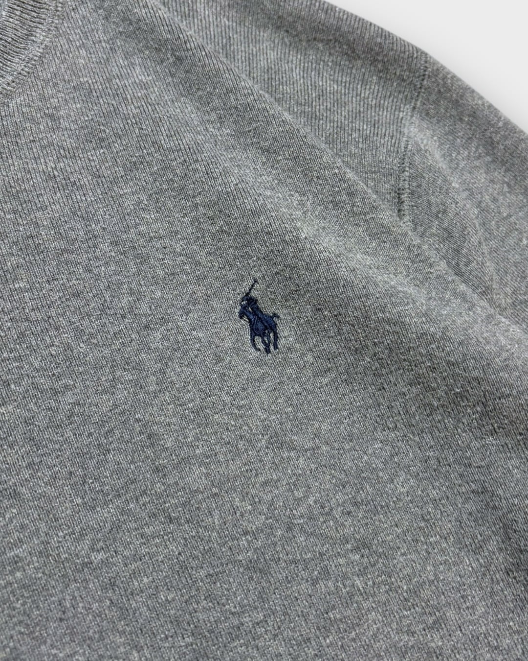 チャコールグレーの無地ボディに、胸元のネイビーポニーがさりげなく効いた一枚です。