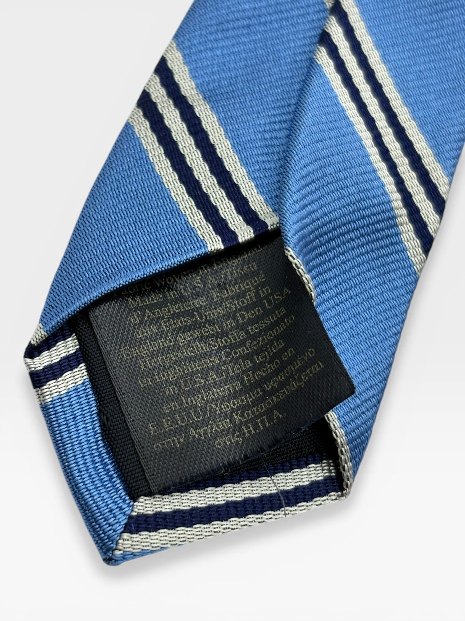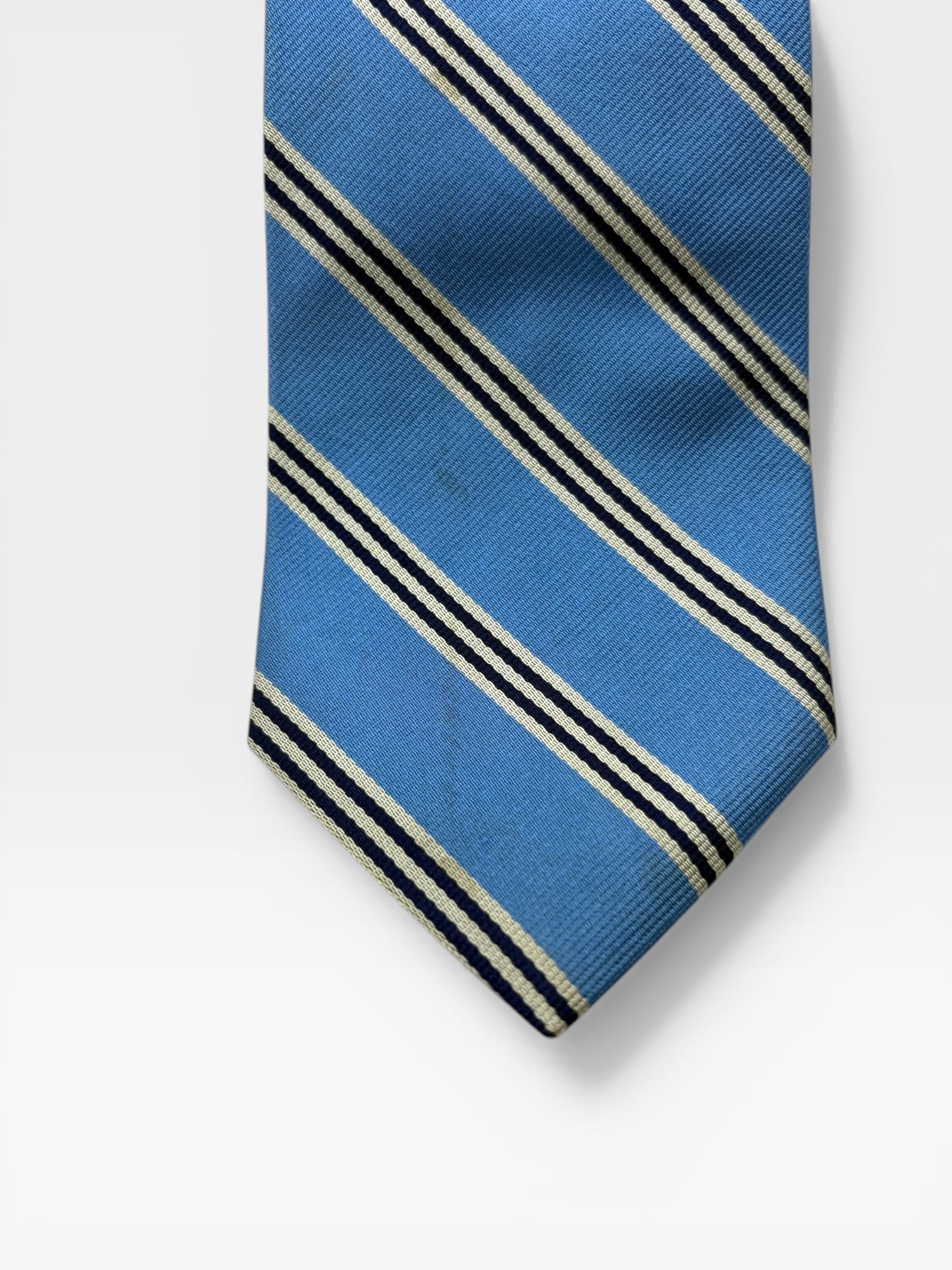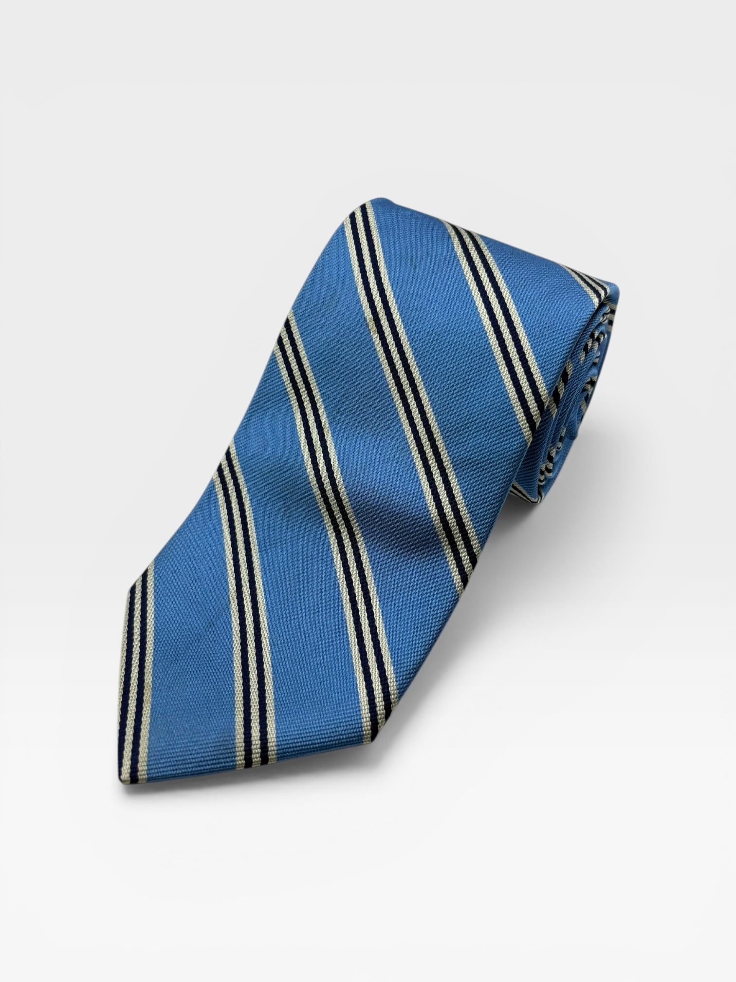 サックスブルーをベースに、ホワイトとネイビーのストライプを配した一本です。