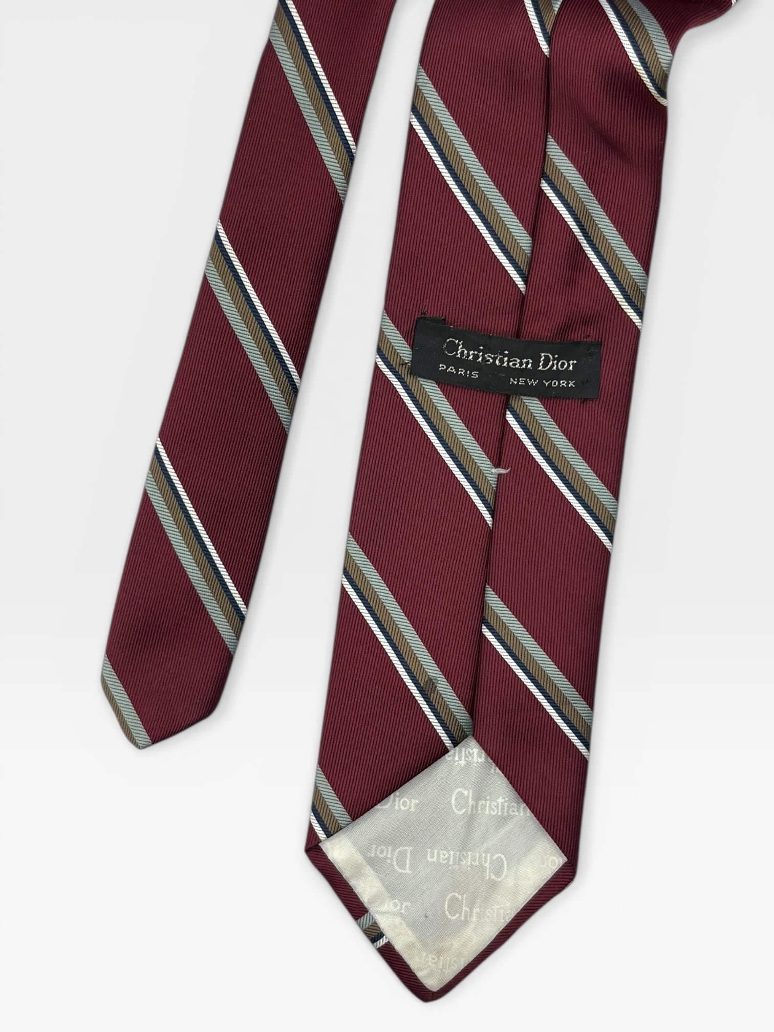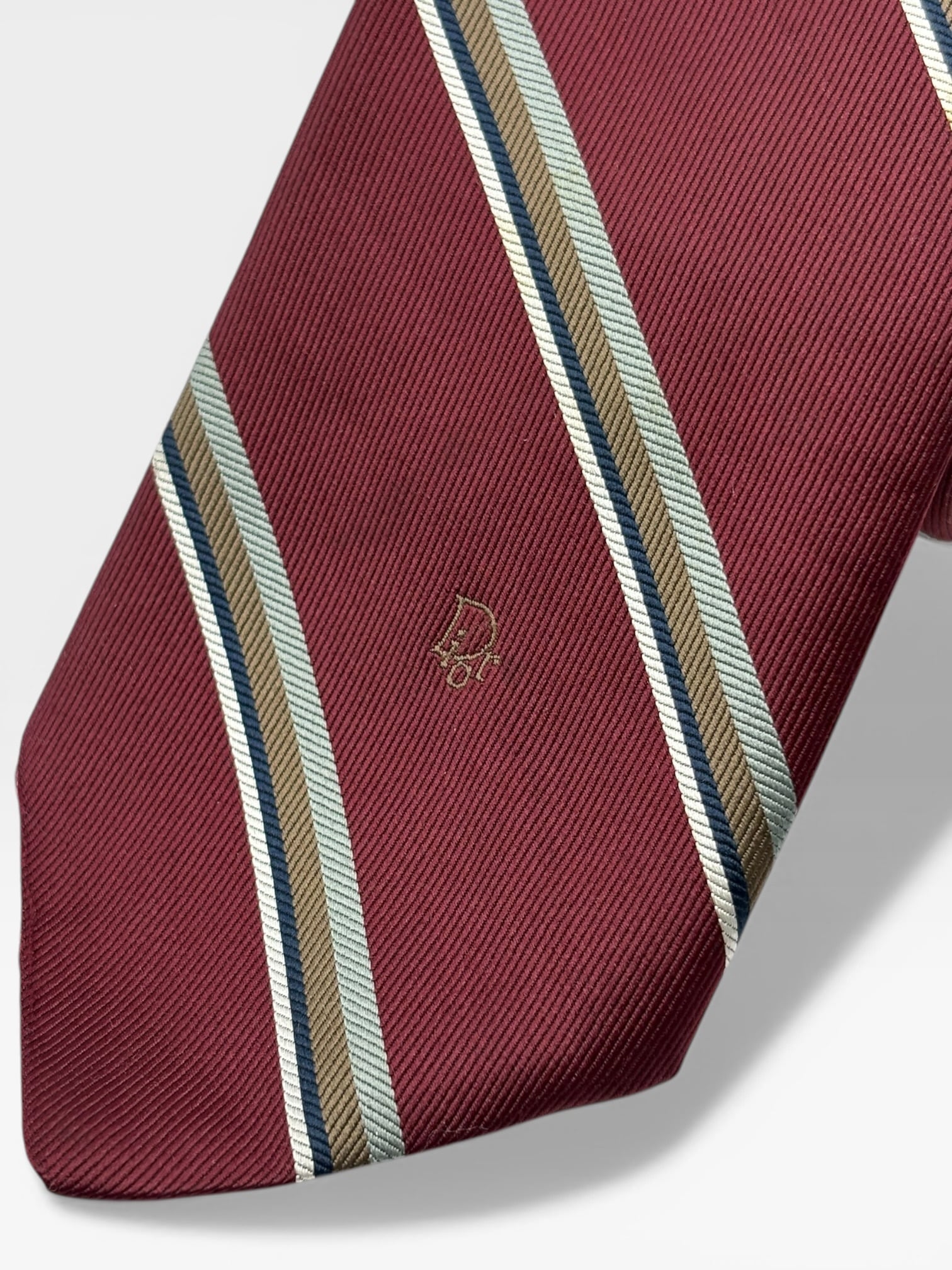 【VINTAGE】1980’s “Christian Dior” Logo Embroidery Regimental Stripe Tie