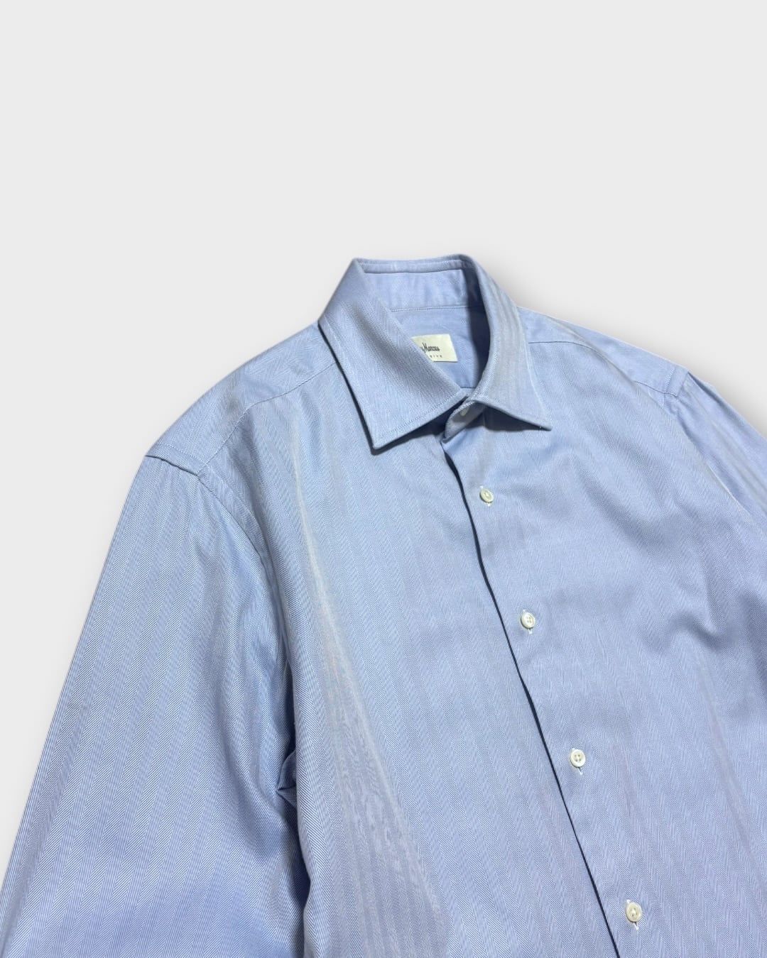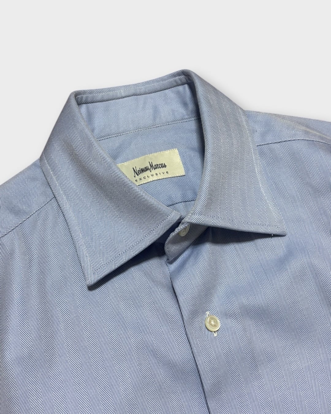 【Used】“Neiman Marcus” Herringbone Sax Blue Dress Shirt Made in Italy