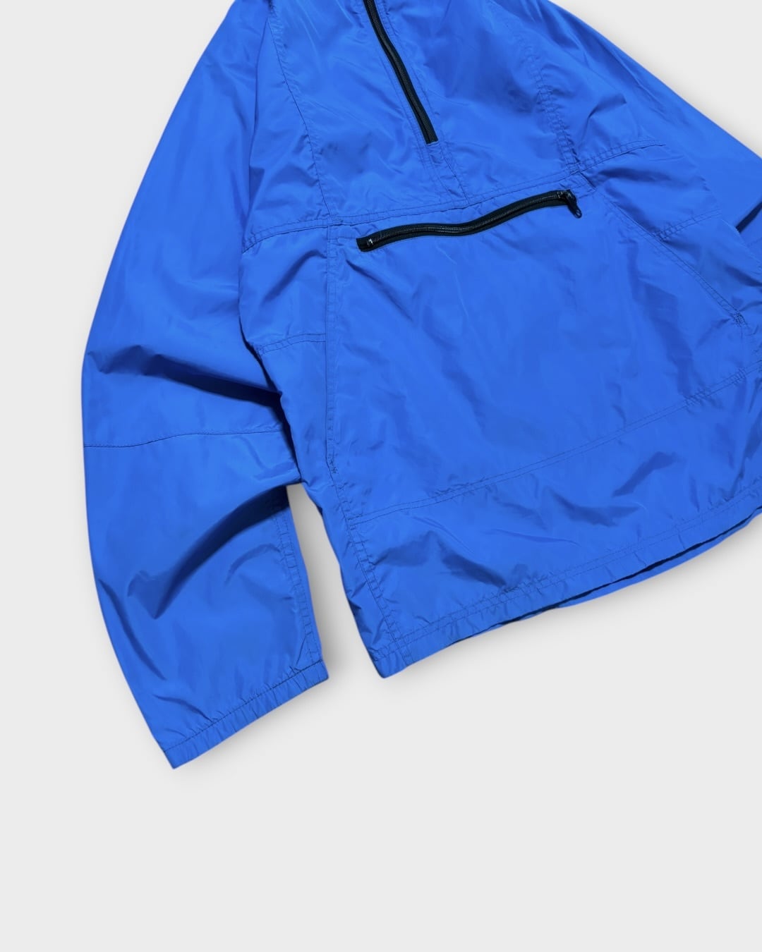 鮮やかなブルーの無地ボディが目を引く一枚で、古いアウトドア物らしい発色の良さが魅力です。