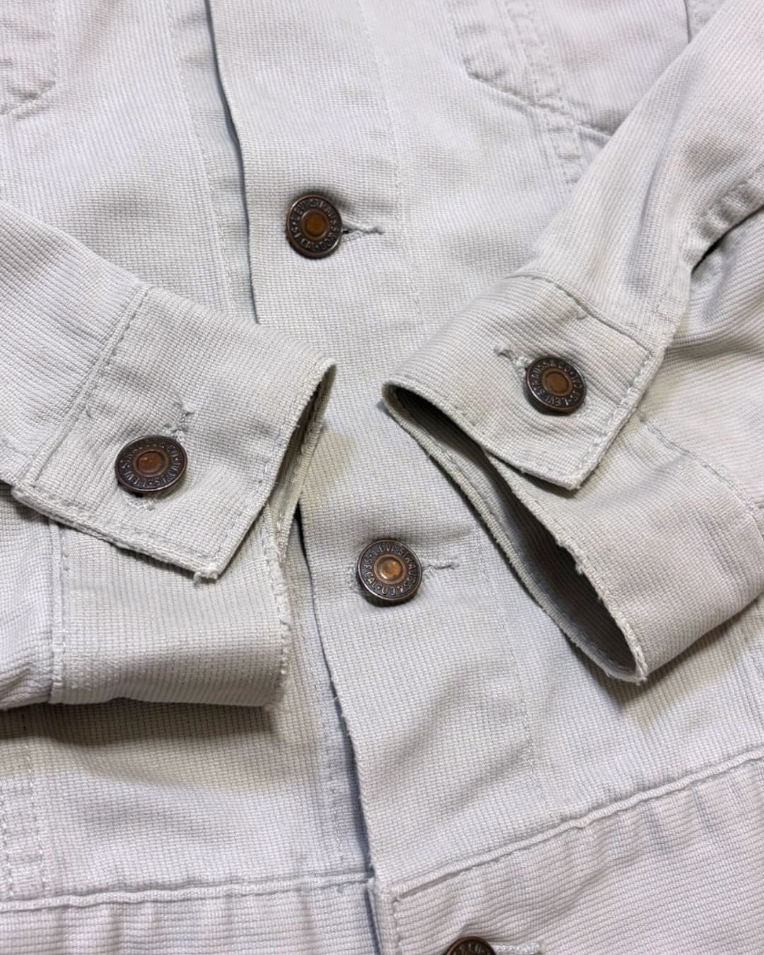 【VINTAGE】1990’s “Levi’s” White Pique Trucker Jacket Made in Italy
