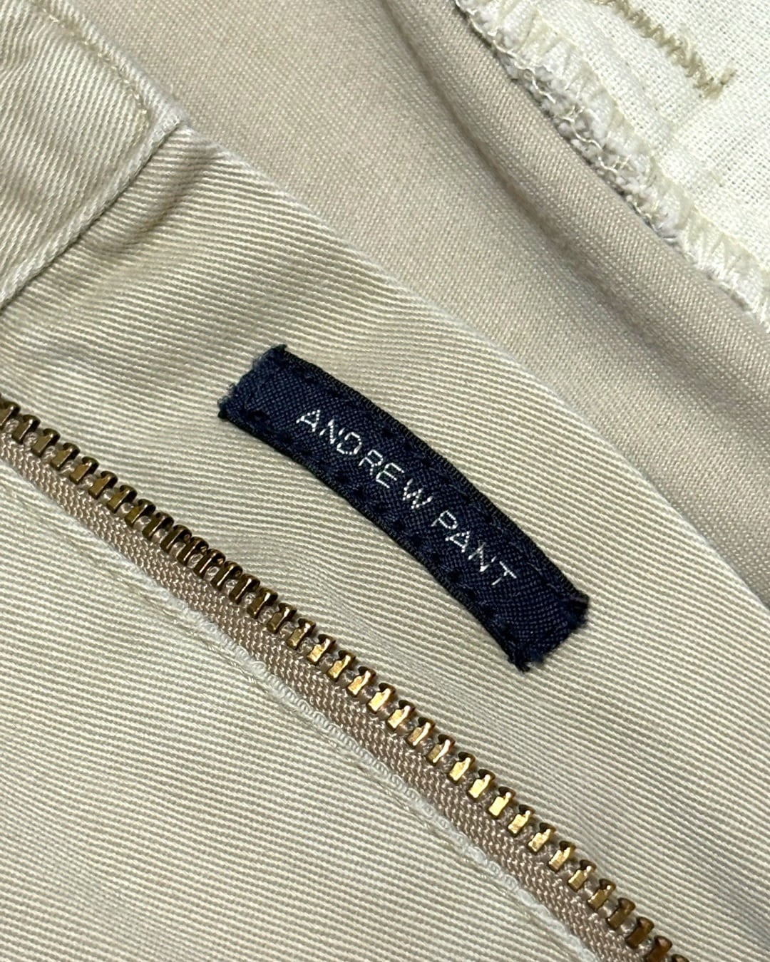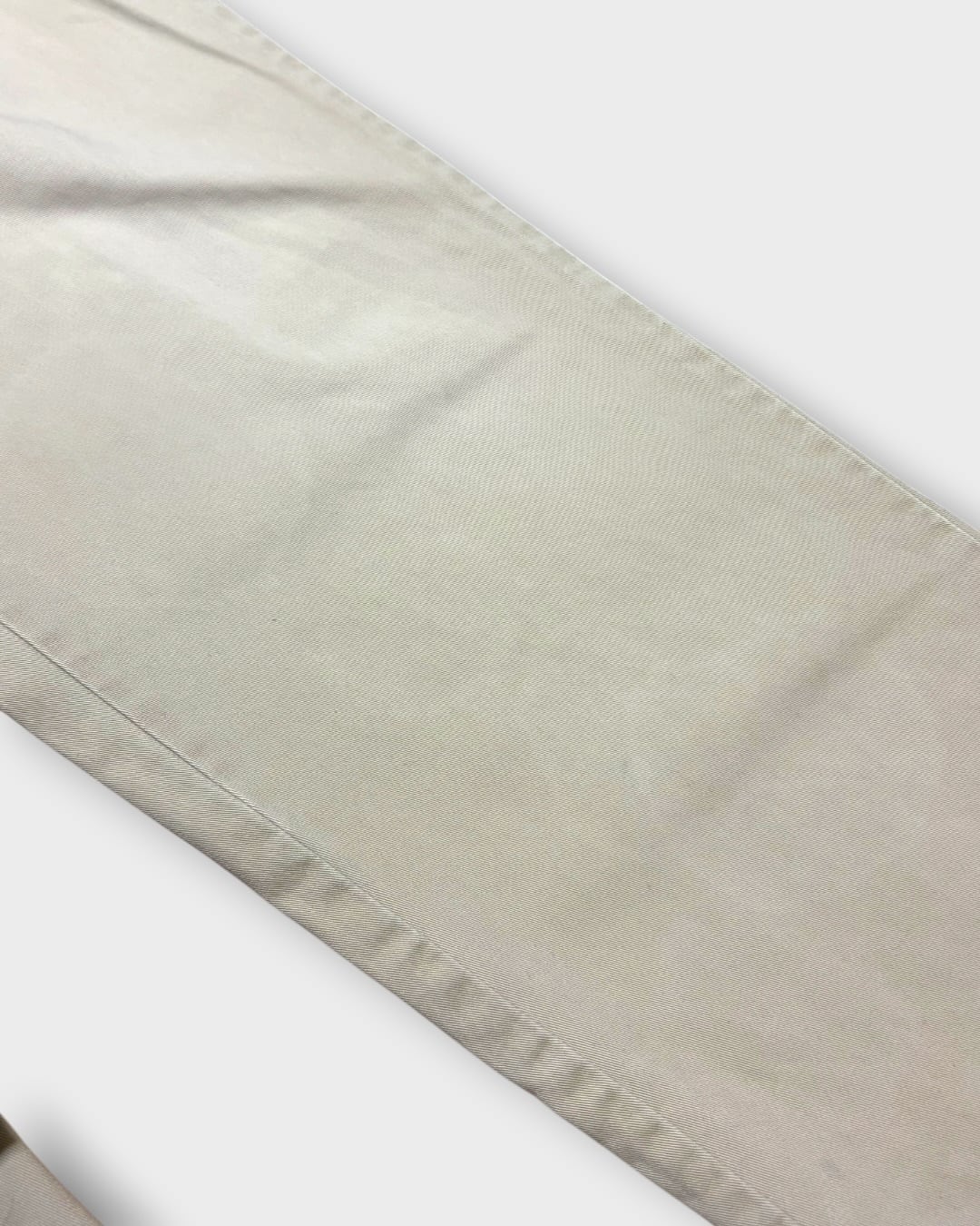 淡いライトベージュの無地ボディに、2タックでしっかりとゆとりを持たせた一本です。