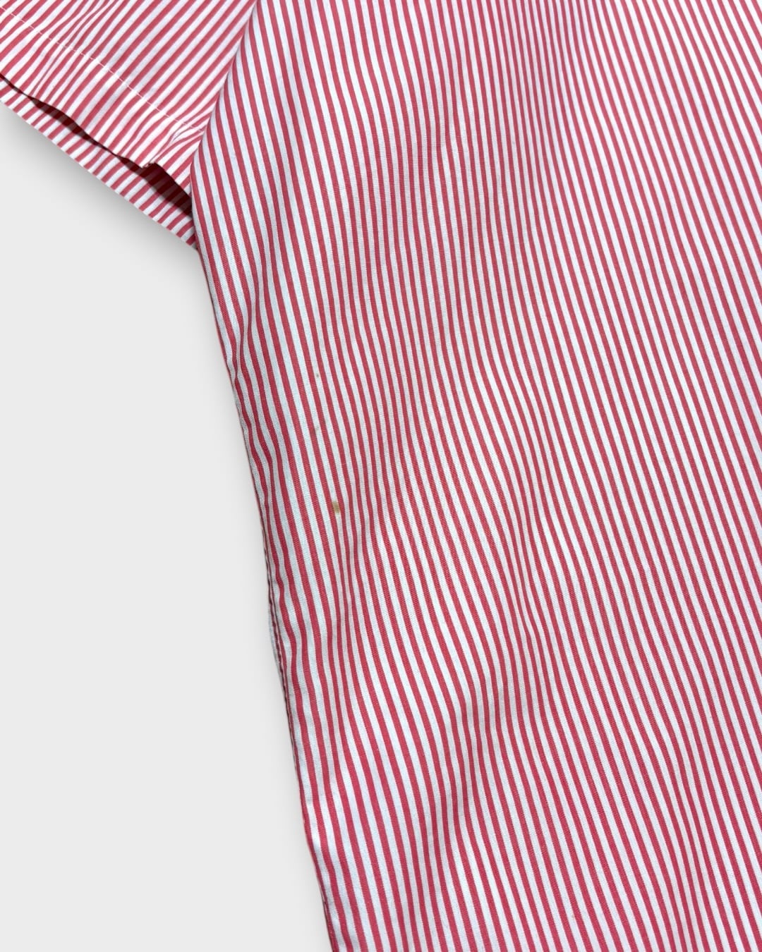 ホワイトベースに、オレンジがかったレッドの細かなストライプが入る一枚です。