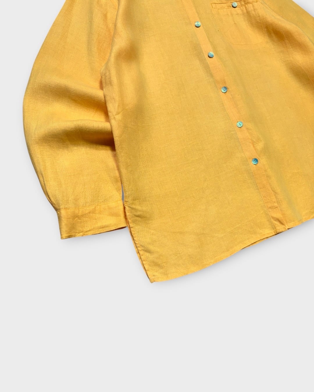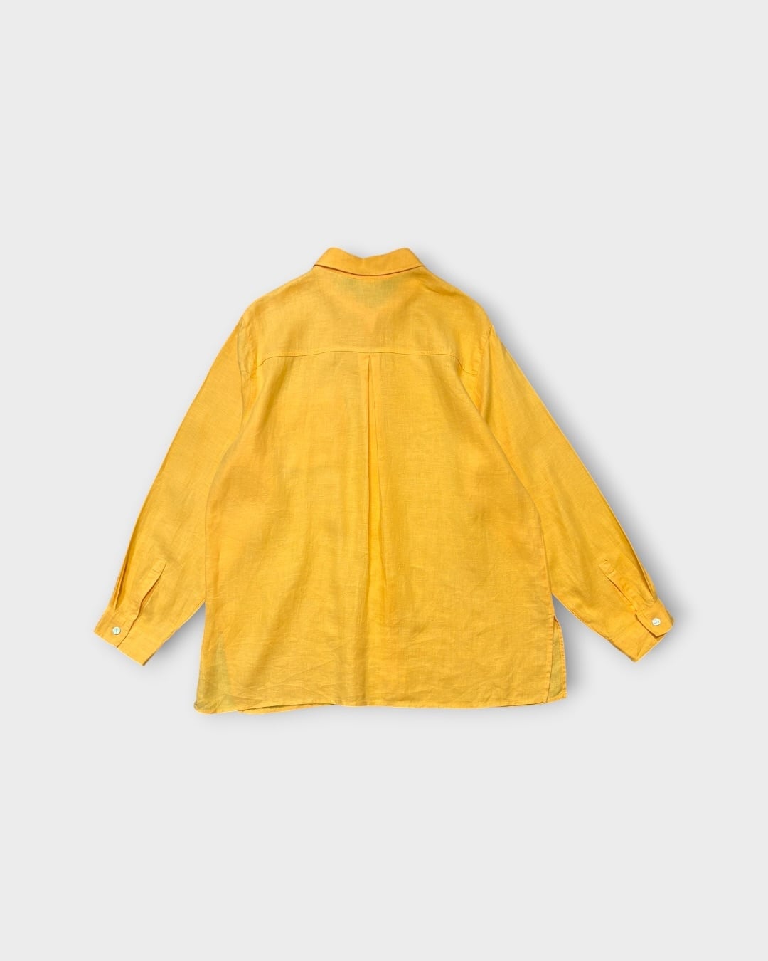 発色の良いイエローリネンを使用した、長袖シャツ。