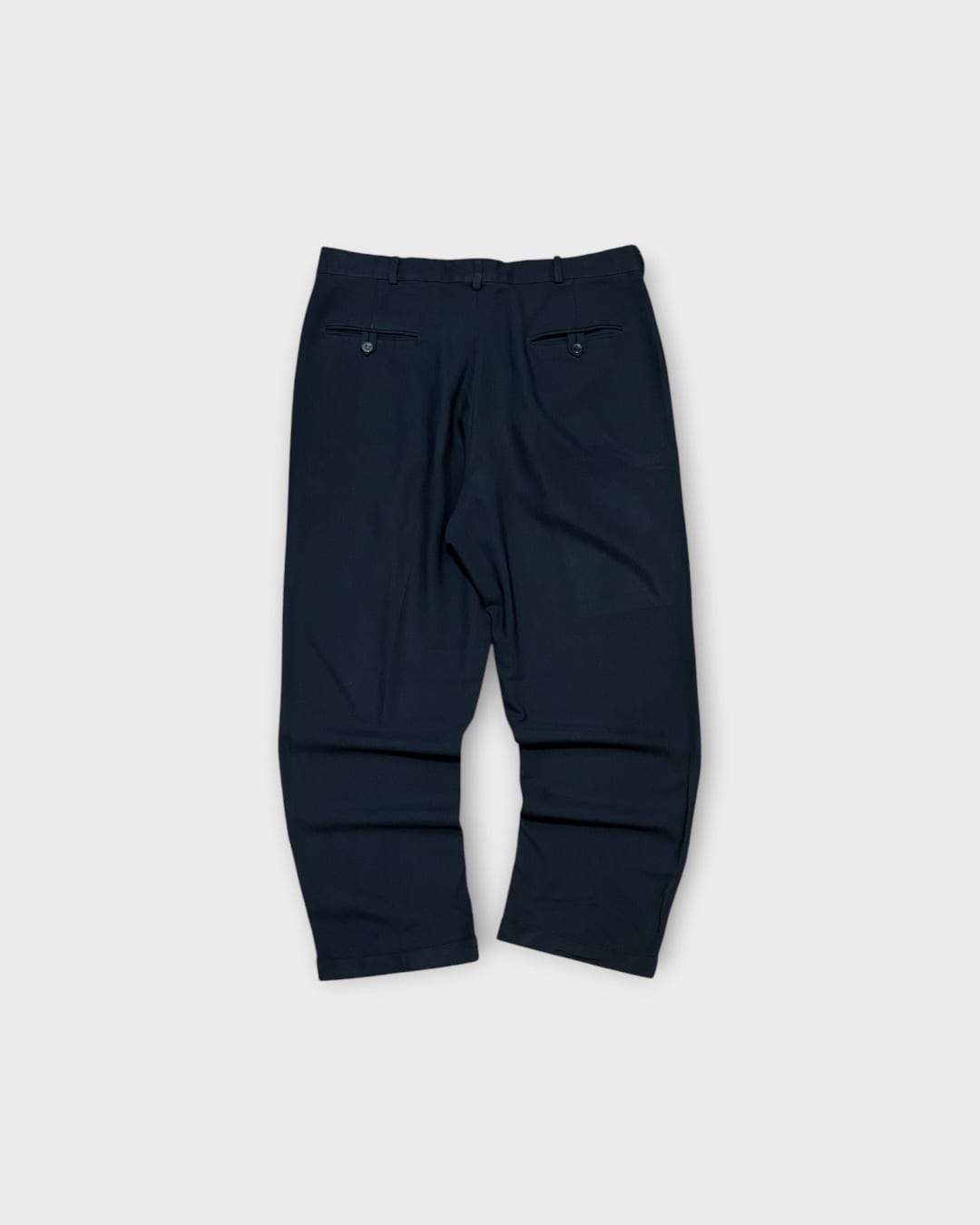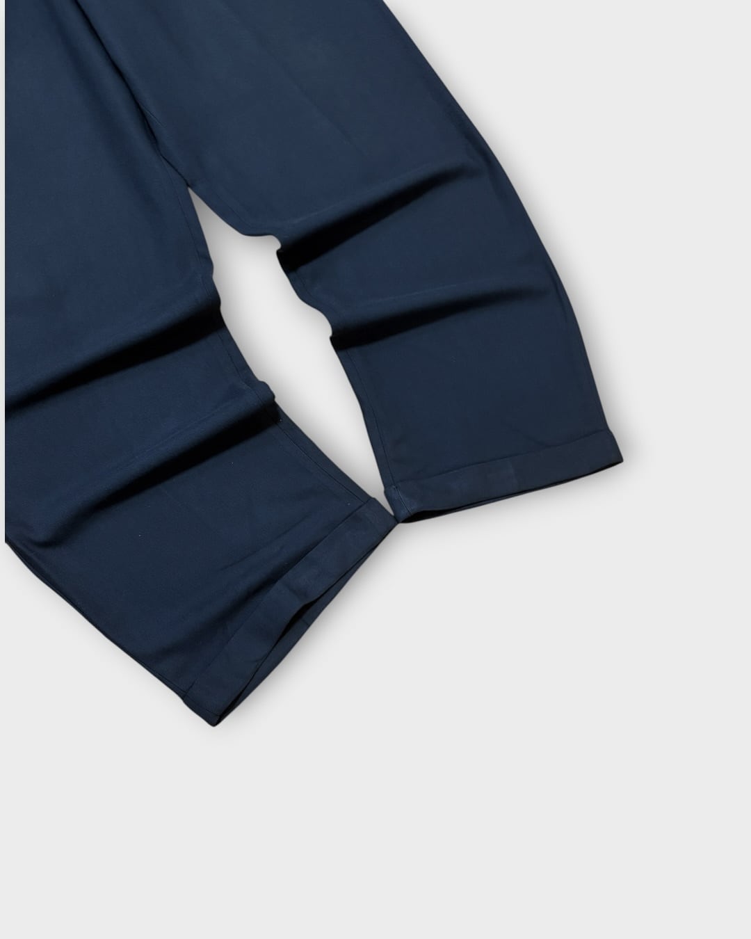 深いネイビーカラーに、ゆとりのある2タック仕様。