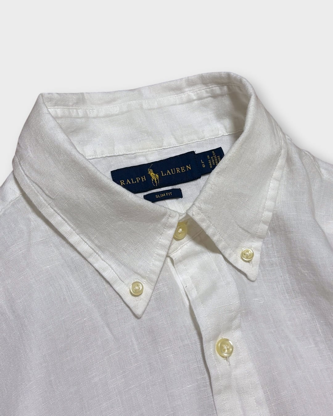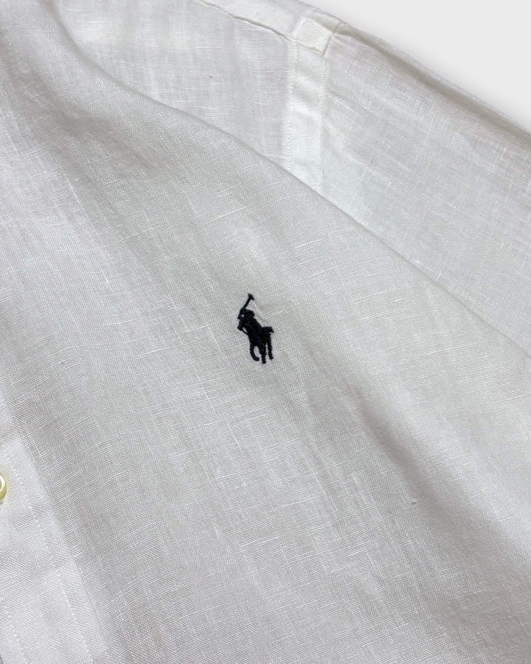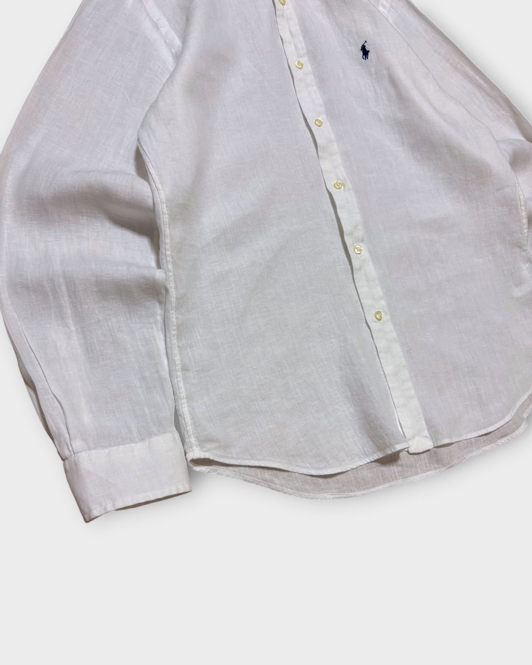“Ralph Lauren”のリネンボタンダウンシャツ。