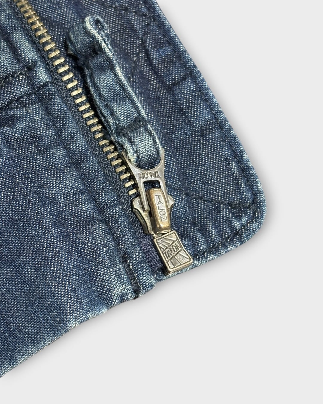 濃い色味のデニム生地に、リブ付きのシンプルなブルゾン型。