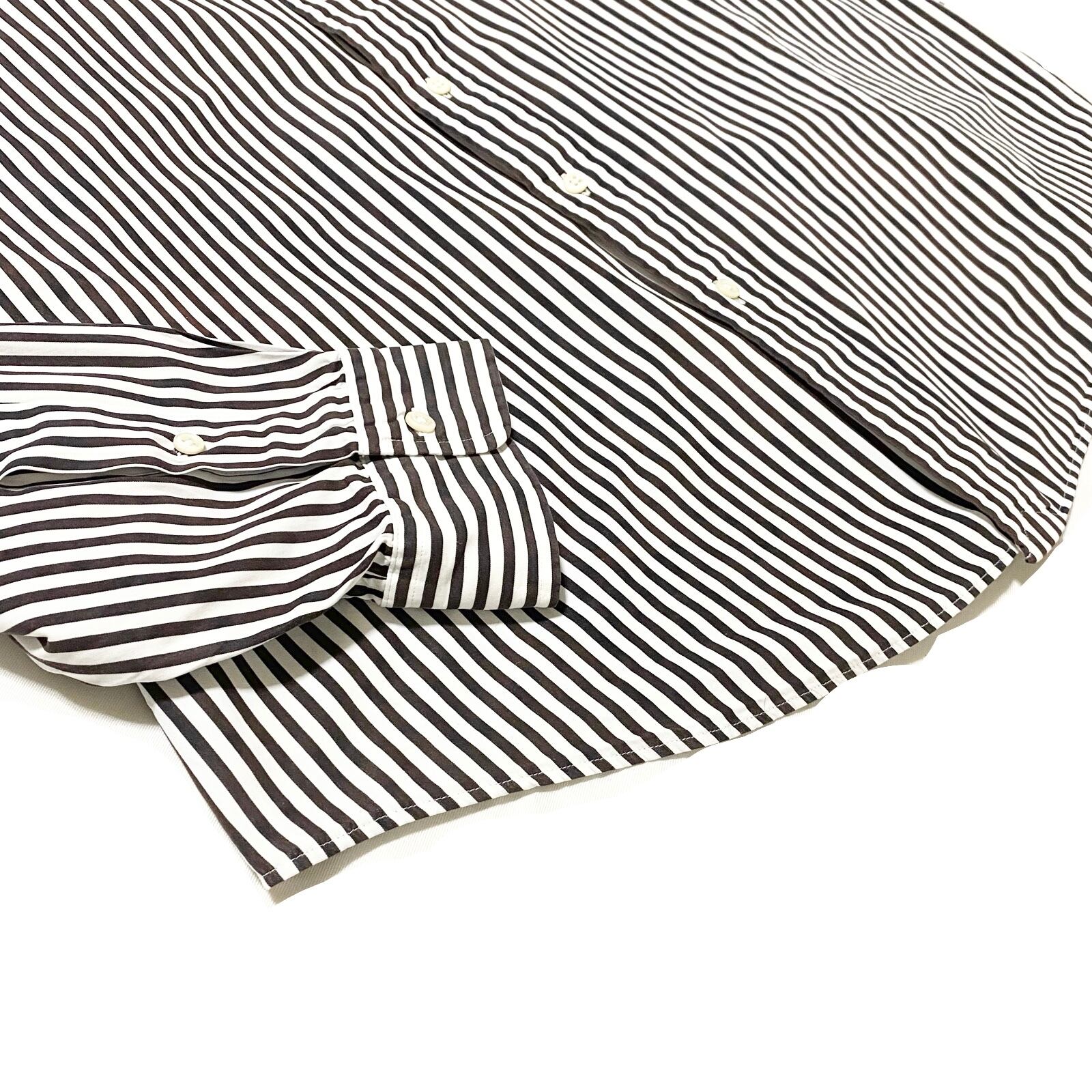 【COMMENT】珍しいブラウンカラーのストライプシャツになります。
