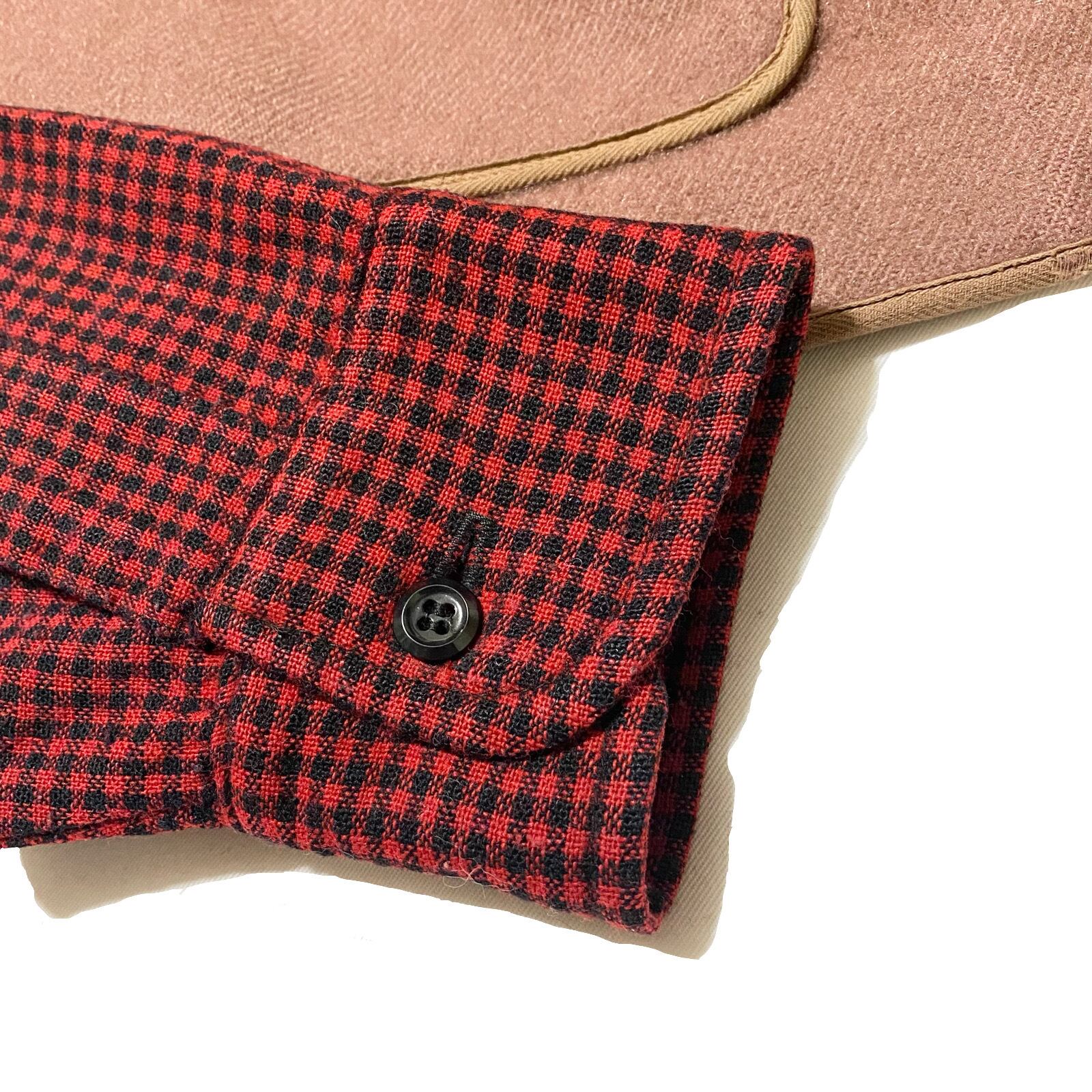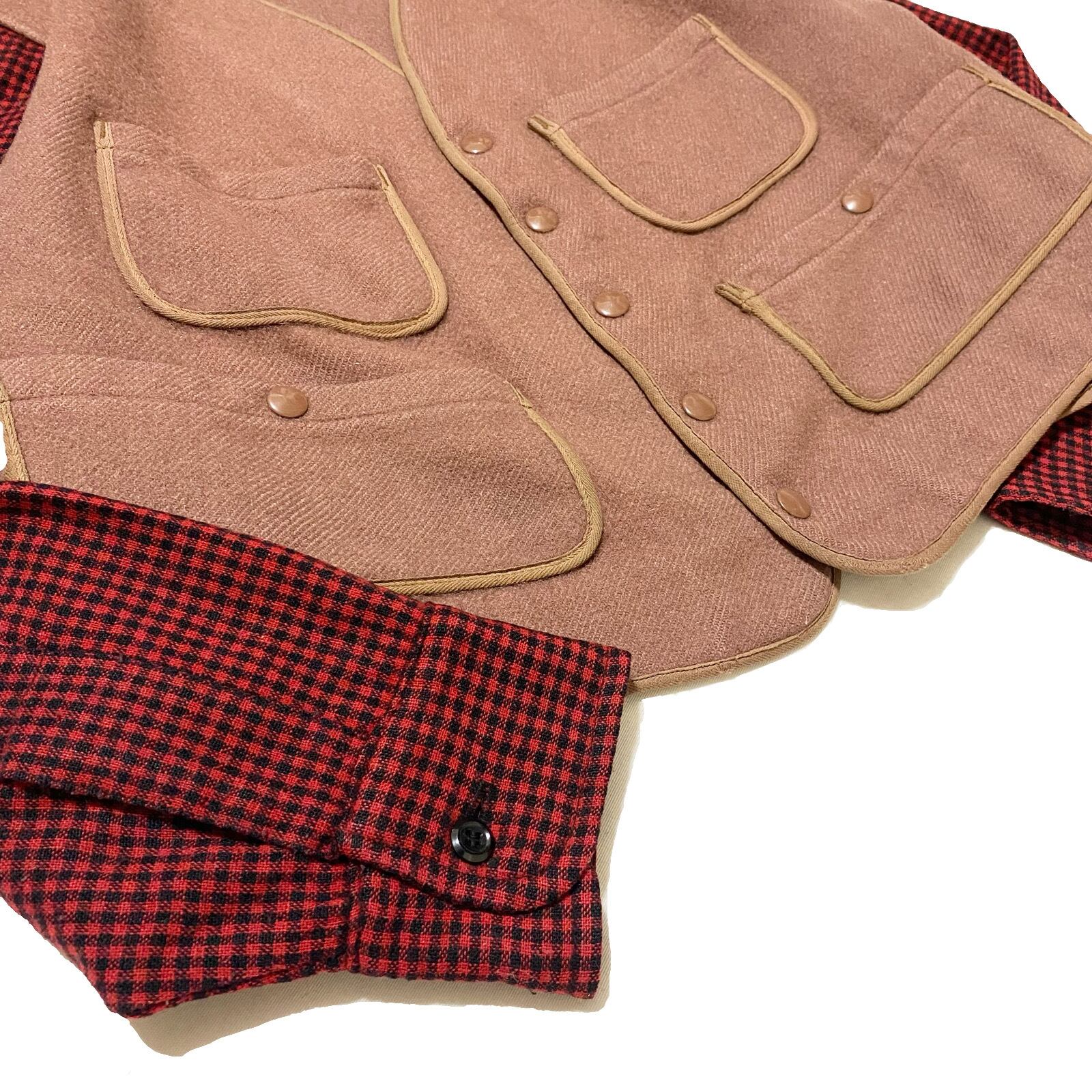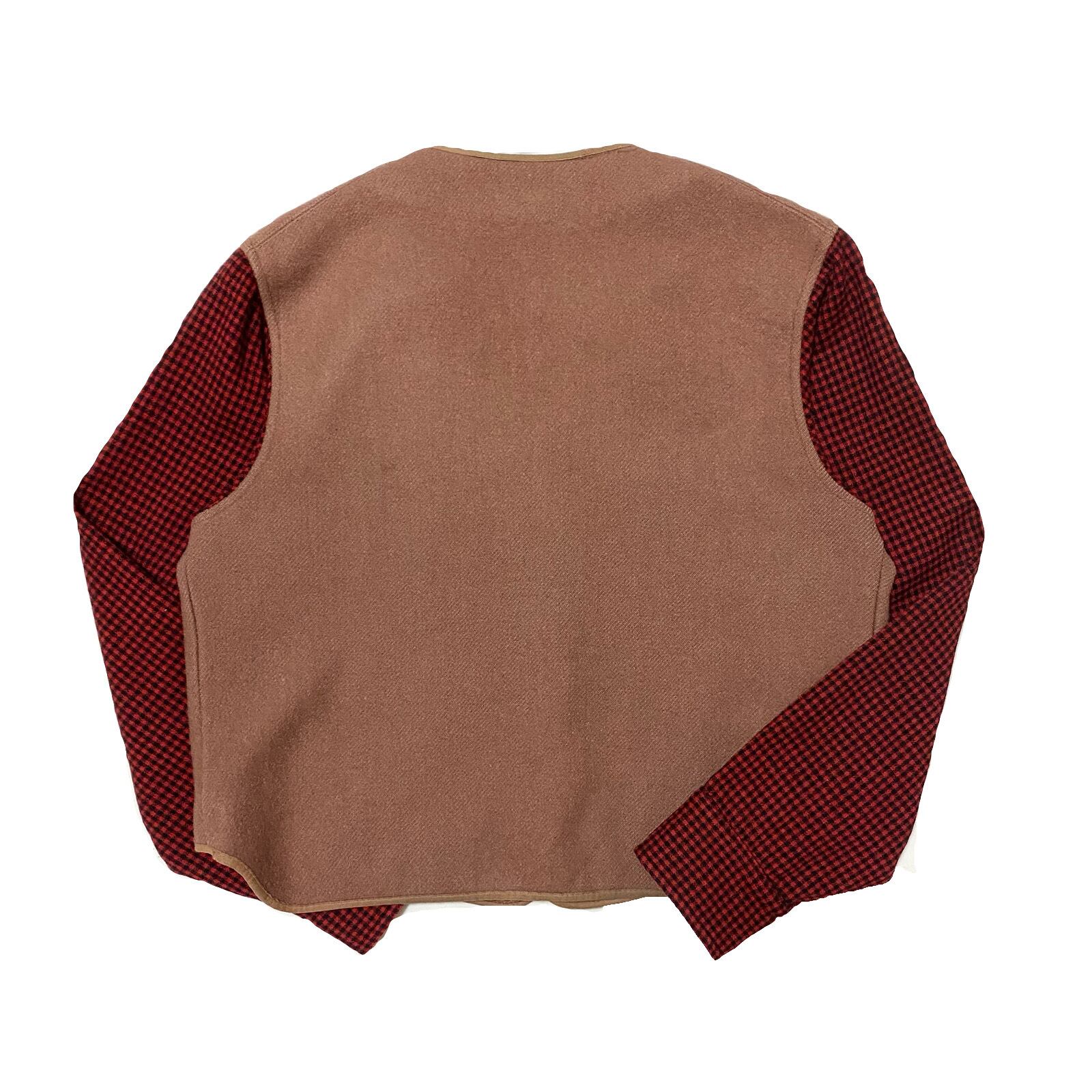 ベストにチェックシャツをレイヤードした様な独特のデザインのジャケットタイプ