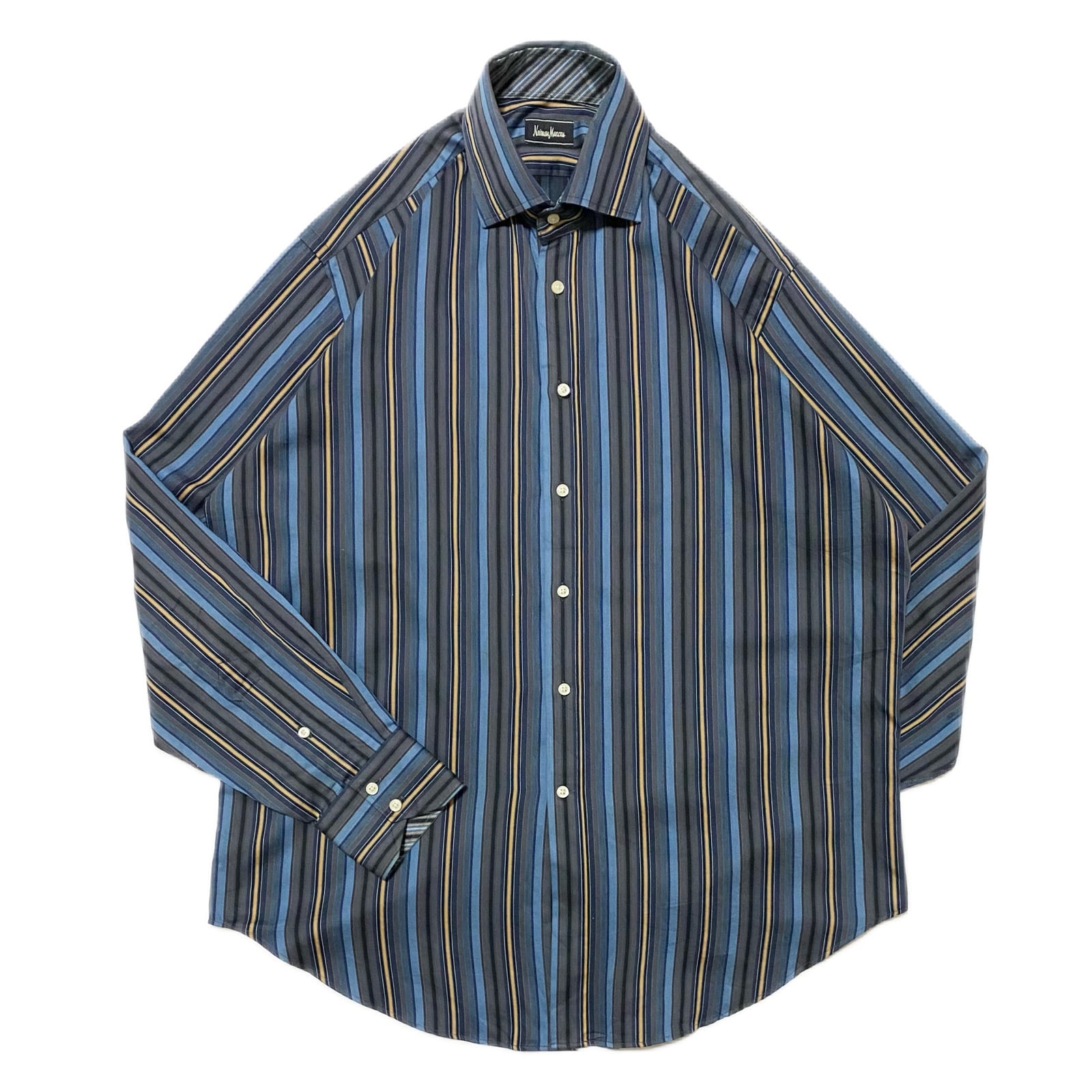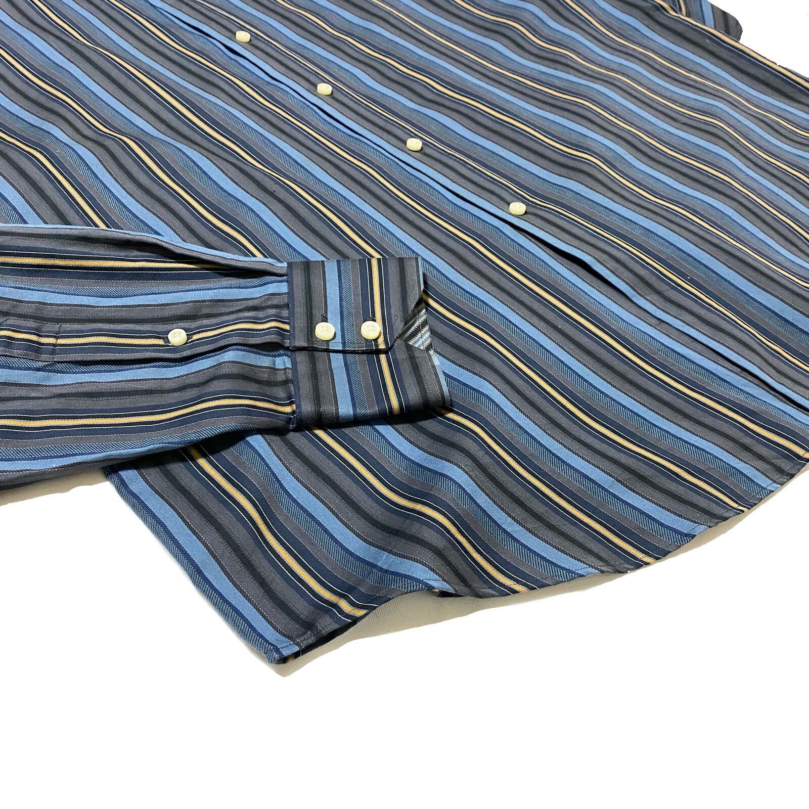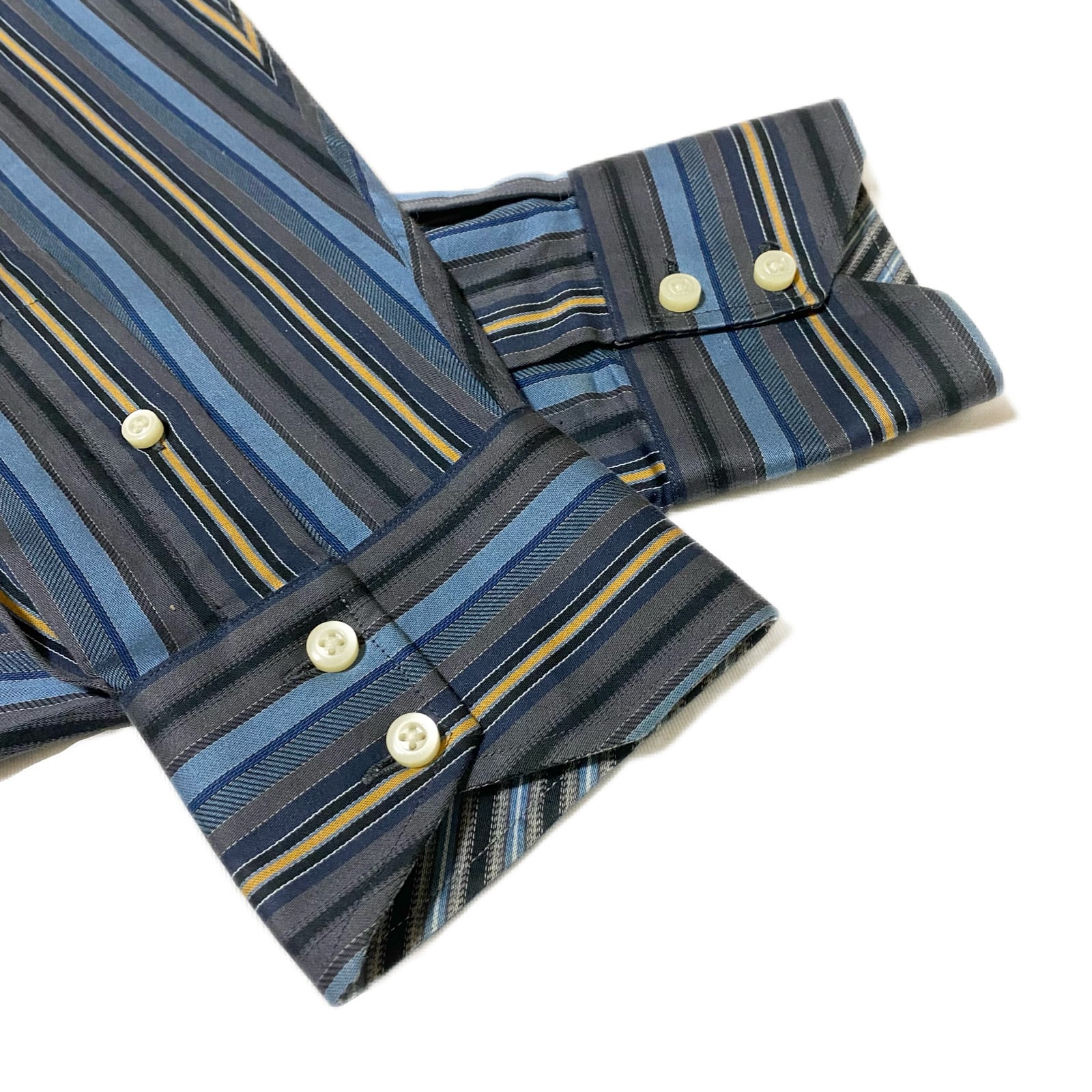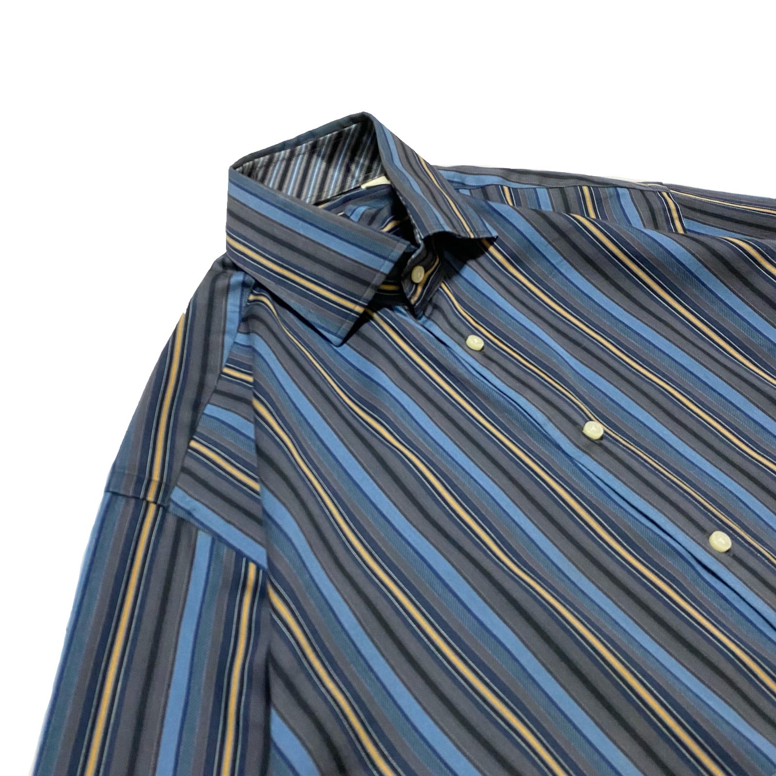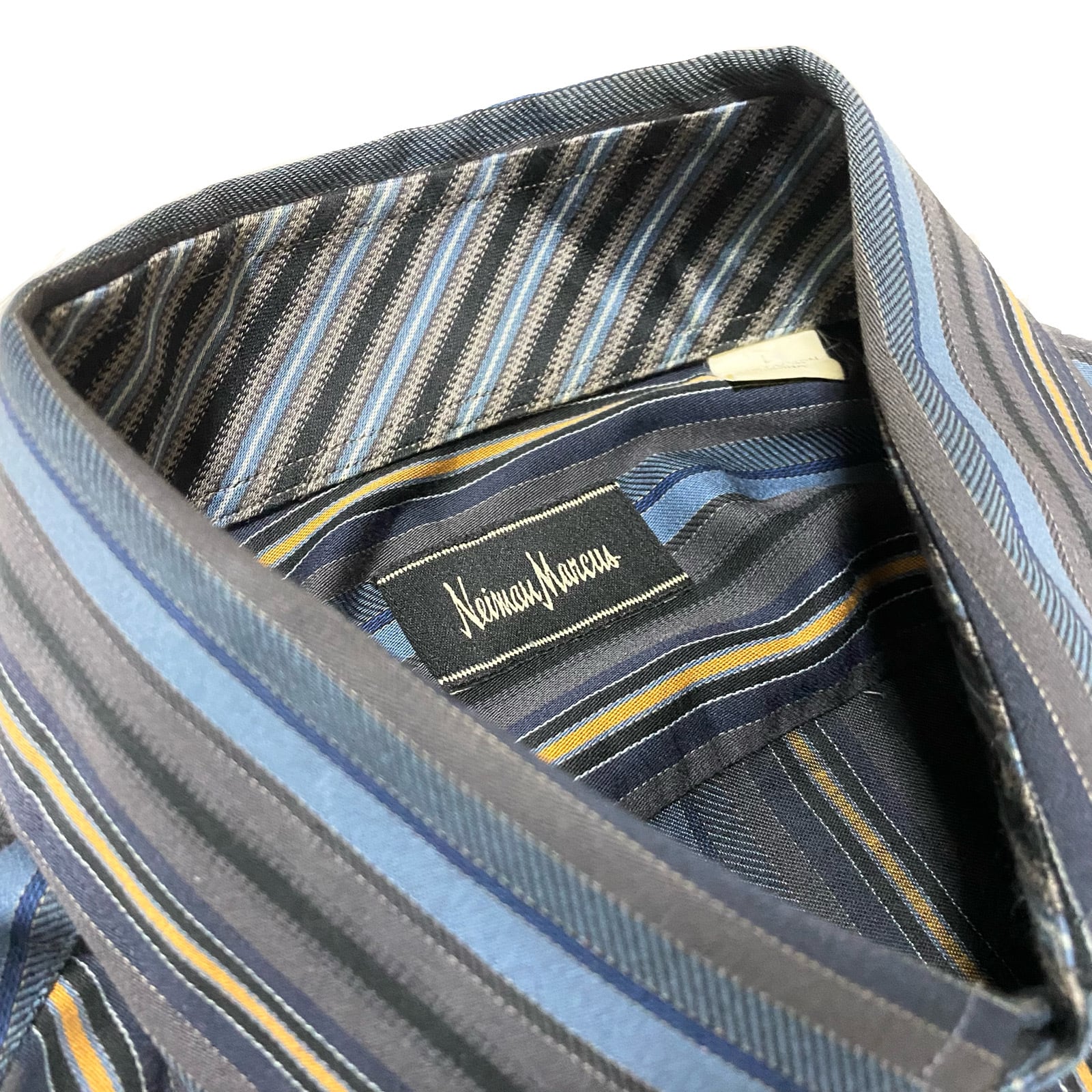 【Neiman Murcus】ニーマンマーカス ストライプシャツ マルチストライプ ワイドカラー ホリゾンタル ブルー