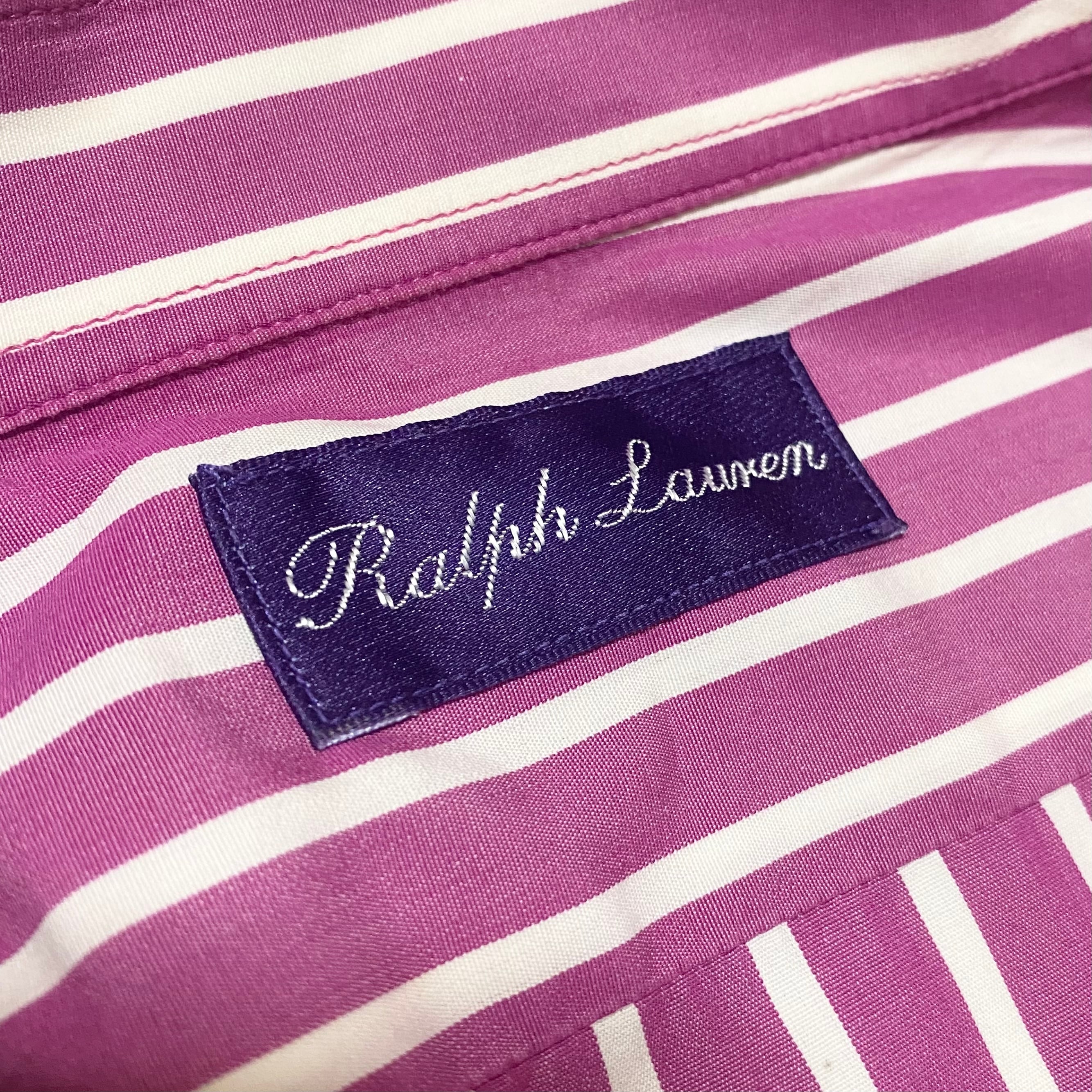 【Ralph Lauren】ラルフローレン パープルレーベル ストライプシャツ パープル MADE IN ITALY イタリア製
