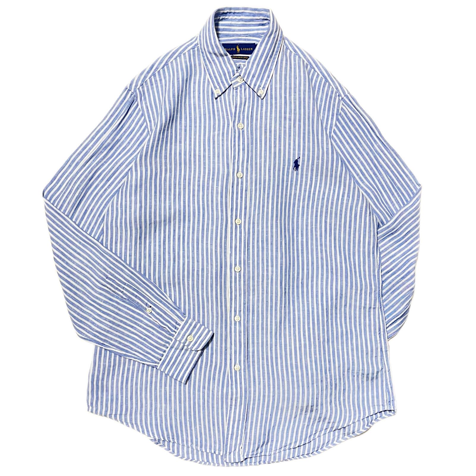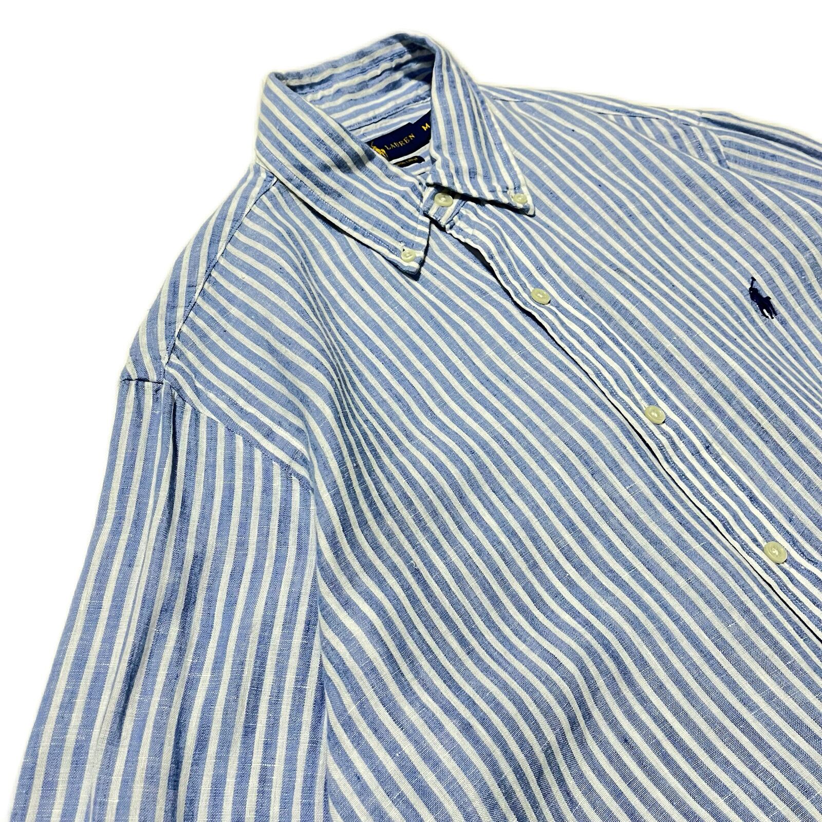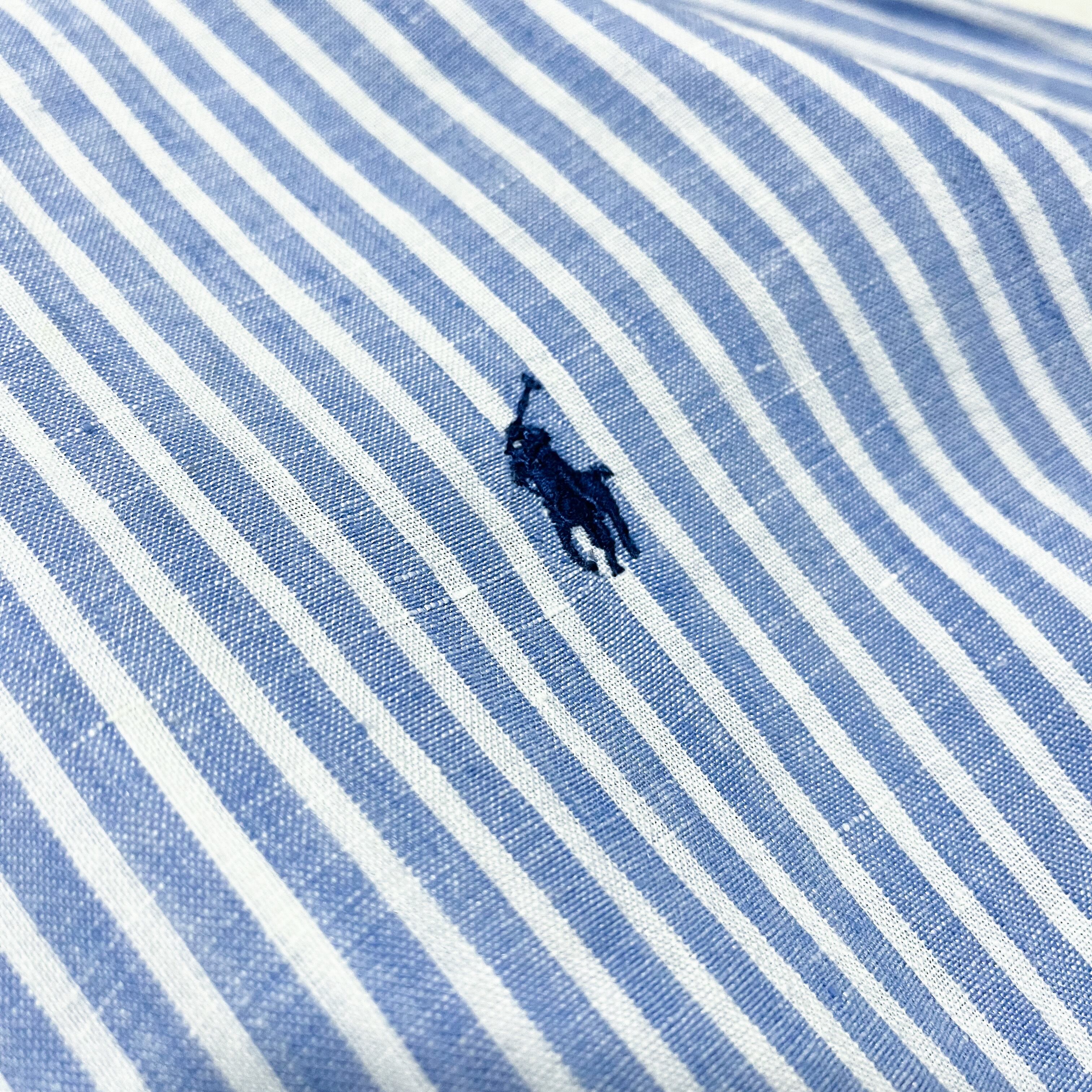 【Ralph Lauren】ラルフローレン ストライプシャツ ボタンダウン リネン サックスブルー