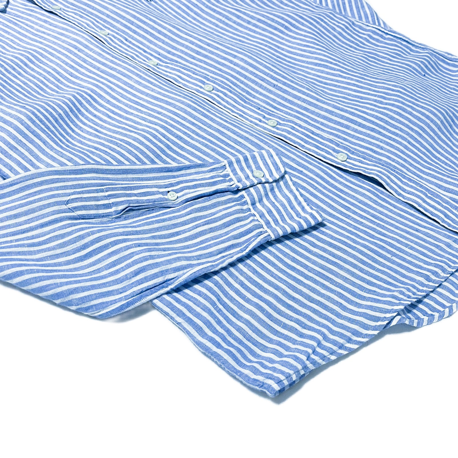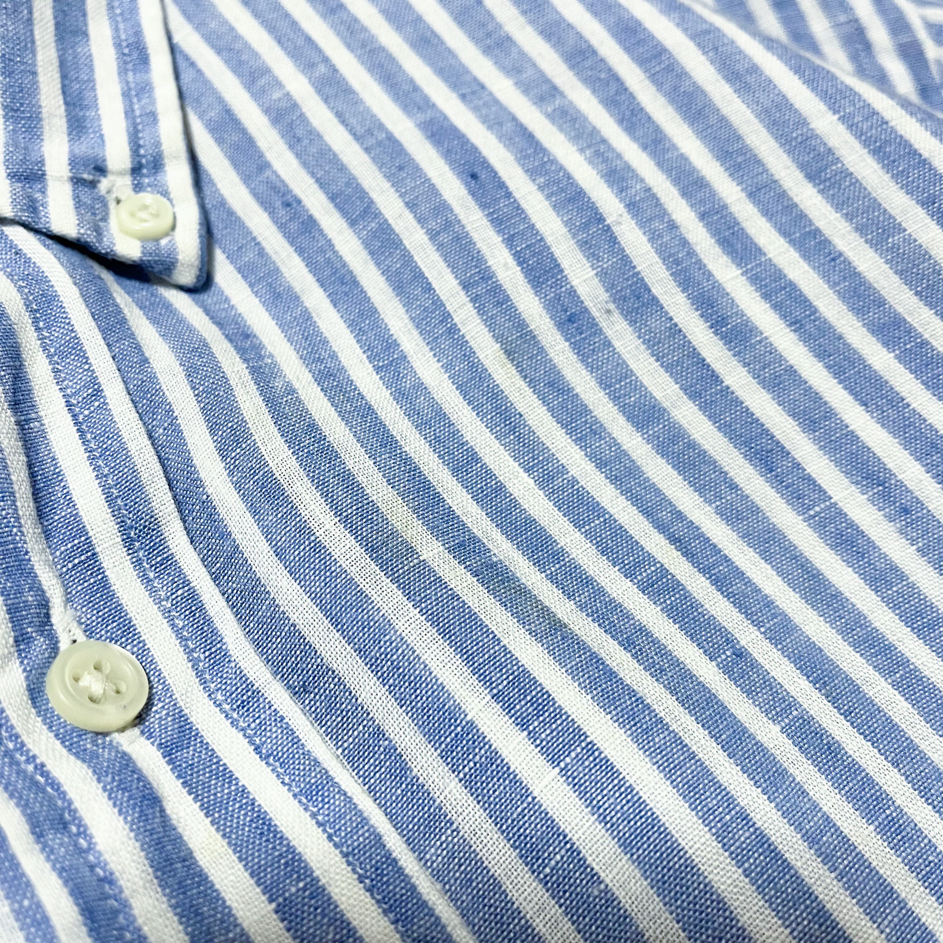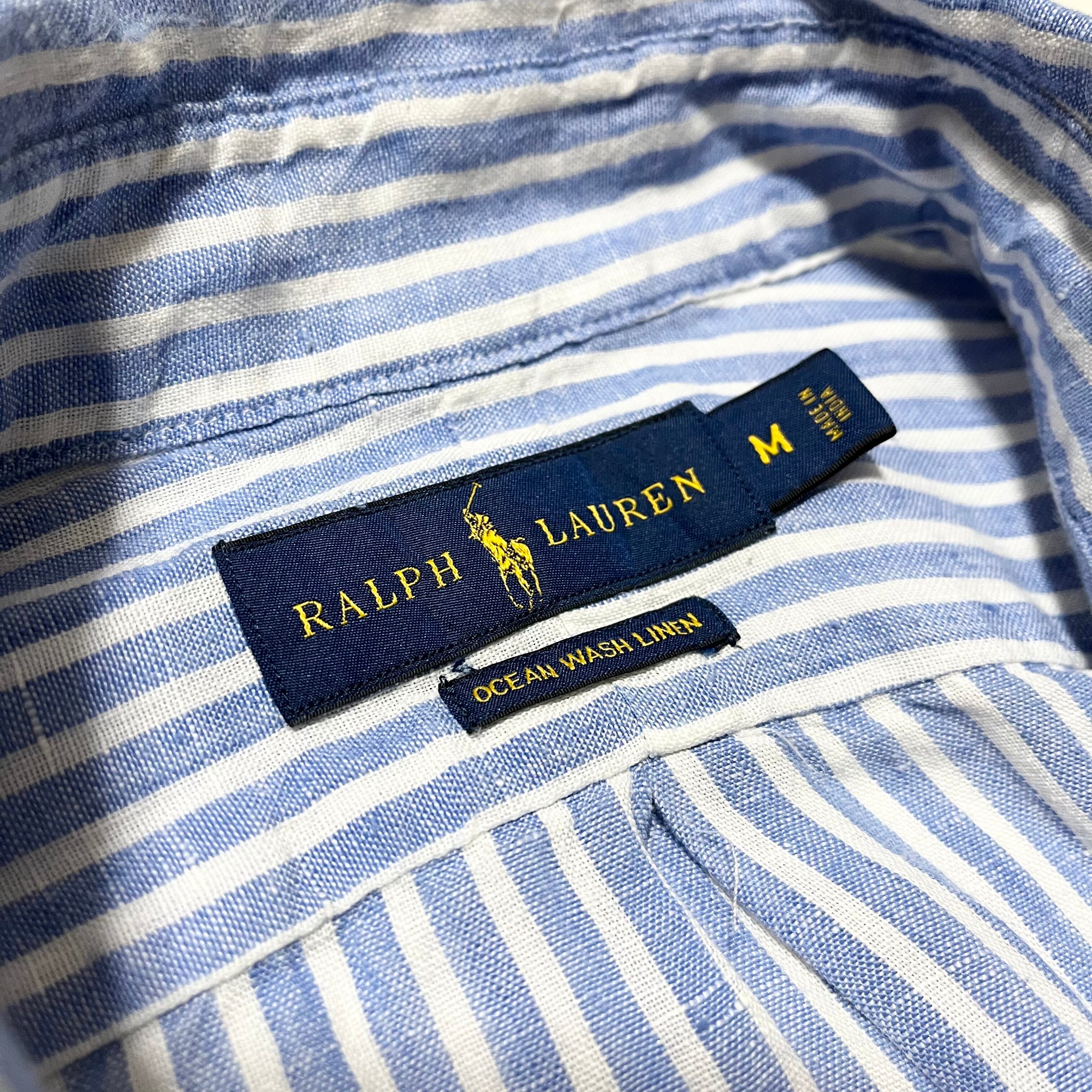 【Ralph Lauren】ラルフローレン ストライプシャツ ボタンダウン リネン サックスブルー