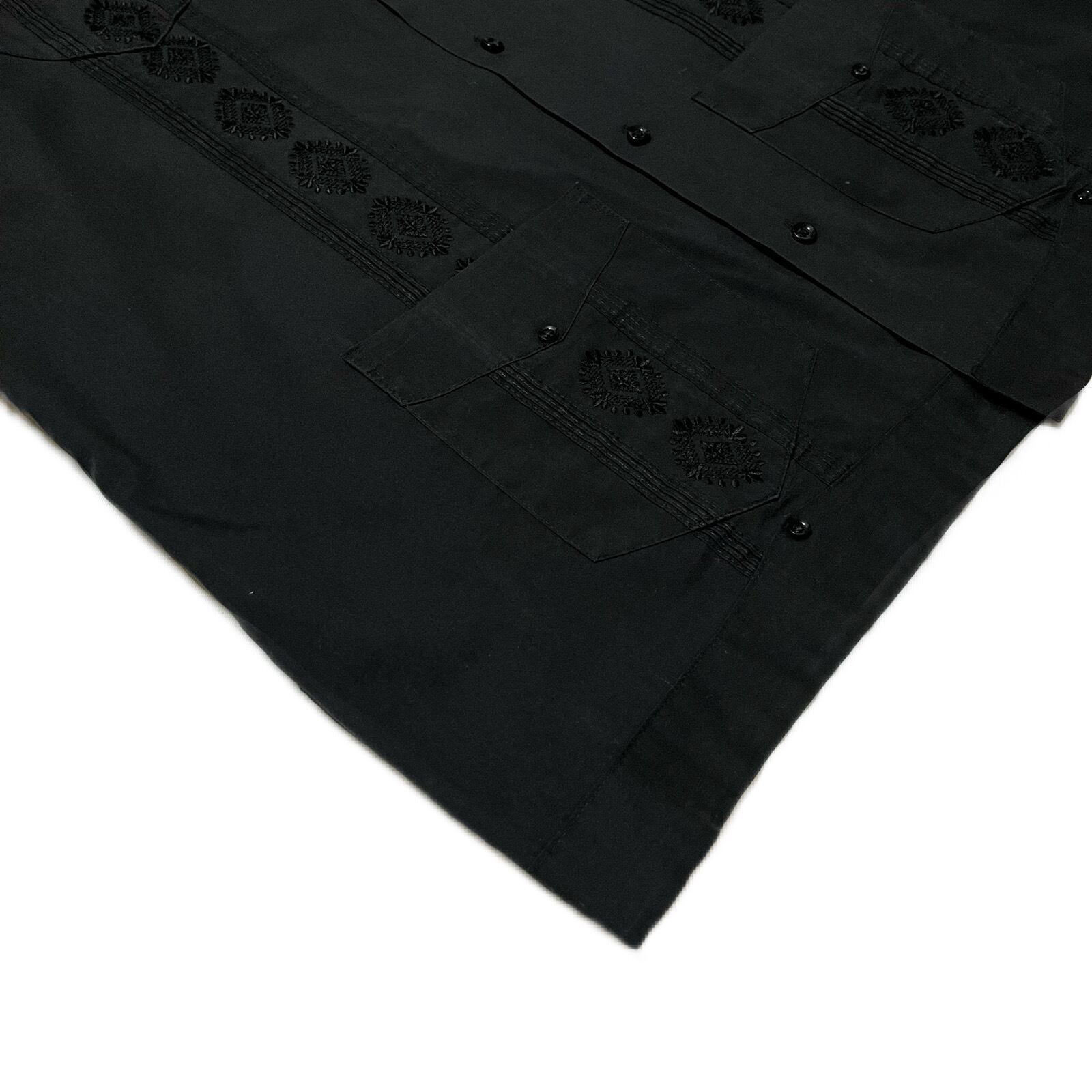 ブラックのボディにブラックの同色刺繍の上品な印象のシャツです。
