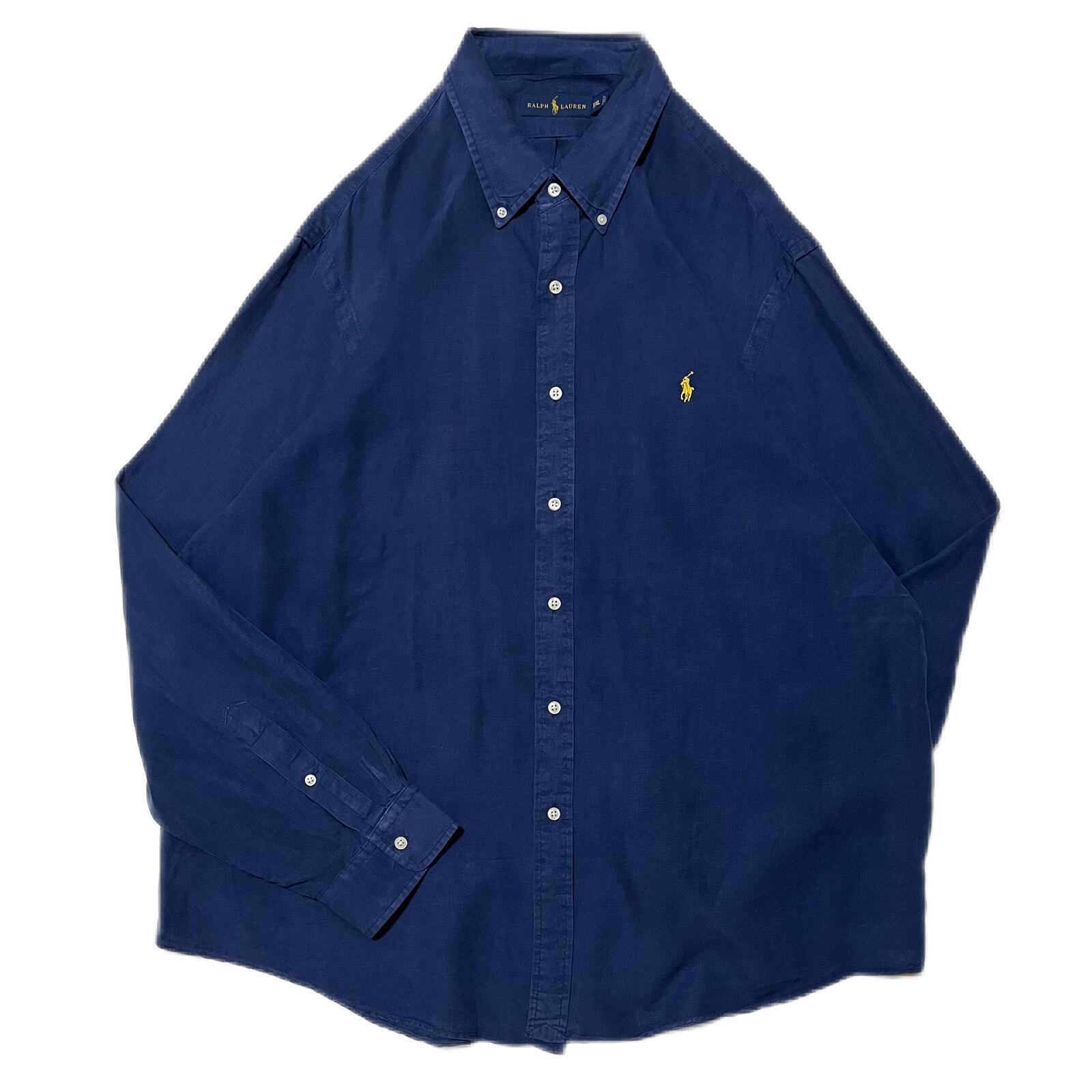 【Ralph Lauren】ラルフローレン ボタンダウンシャツ リネン ビッグサイズ ネイビー