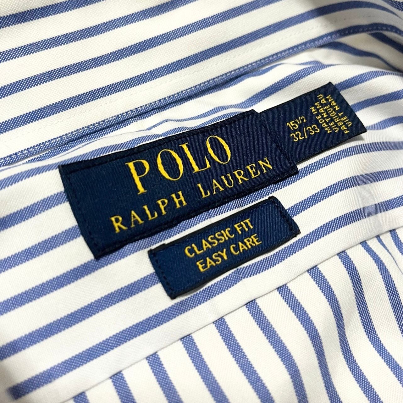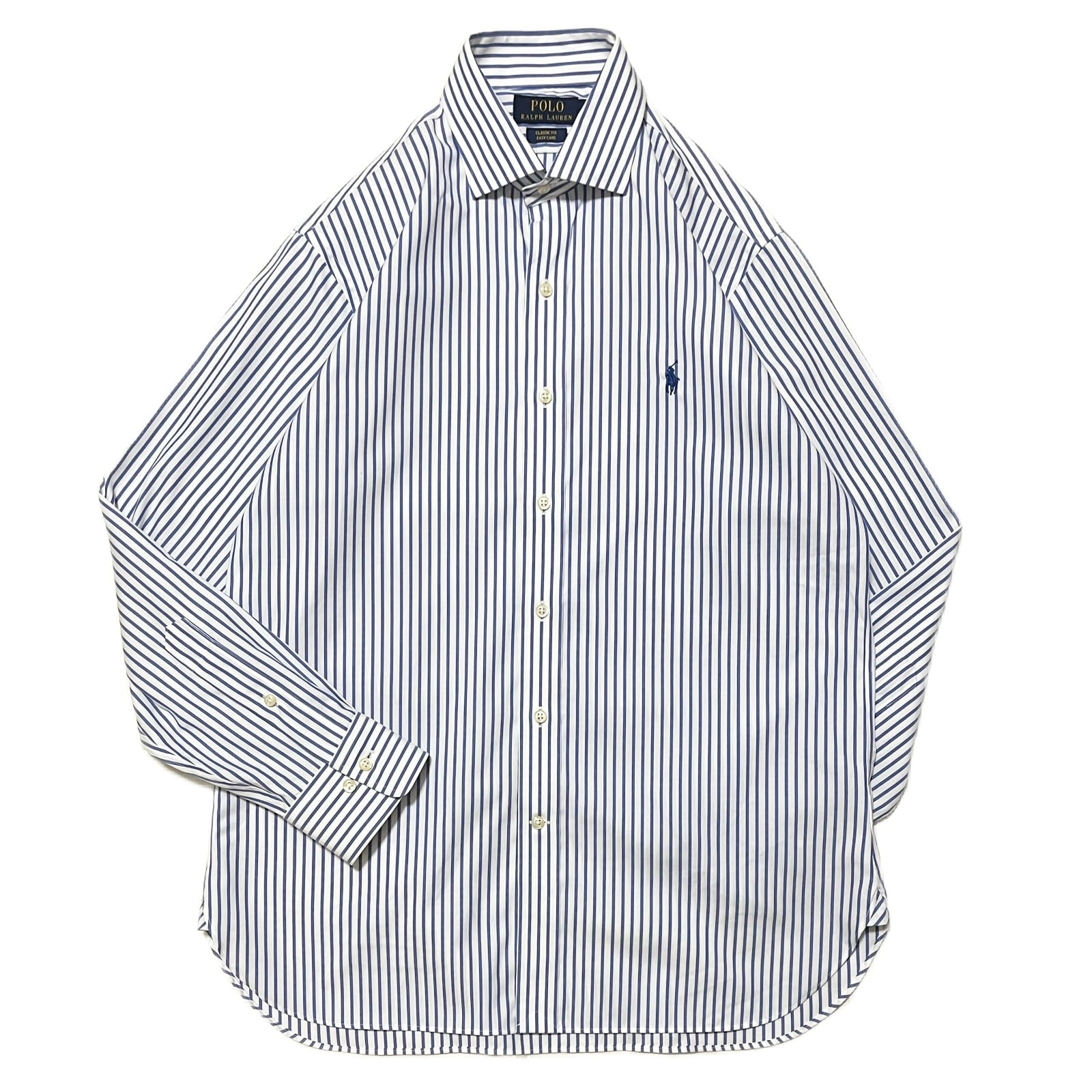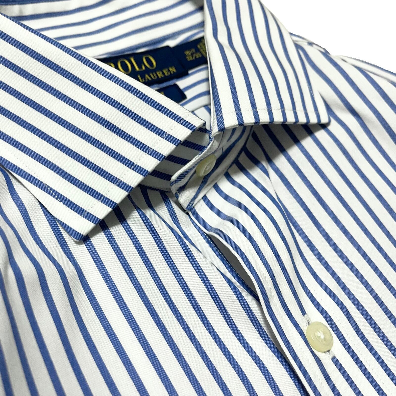 【Ralph Lauren】ラルフローレン ストライプシャツ ワイドカラー CLASSIC FIT ブルー