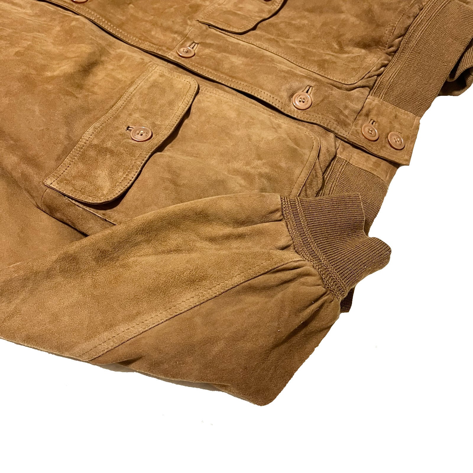【CONDITION】細かなシミなどは見受けられますがスウェードという商品の性質上着用の際に気になる汚れやダメージはなく良いコンディションです。