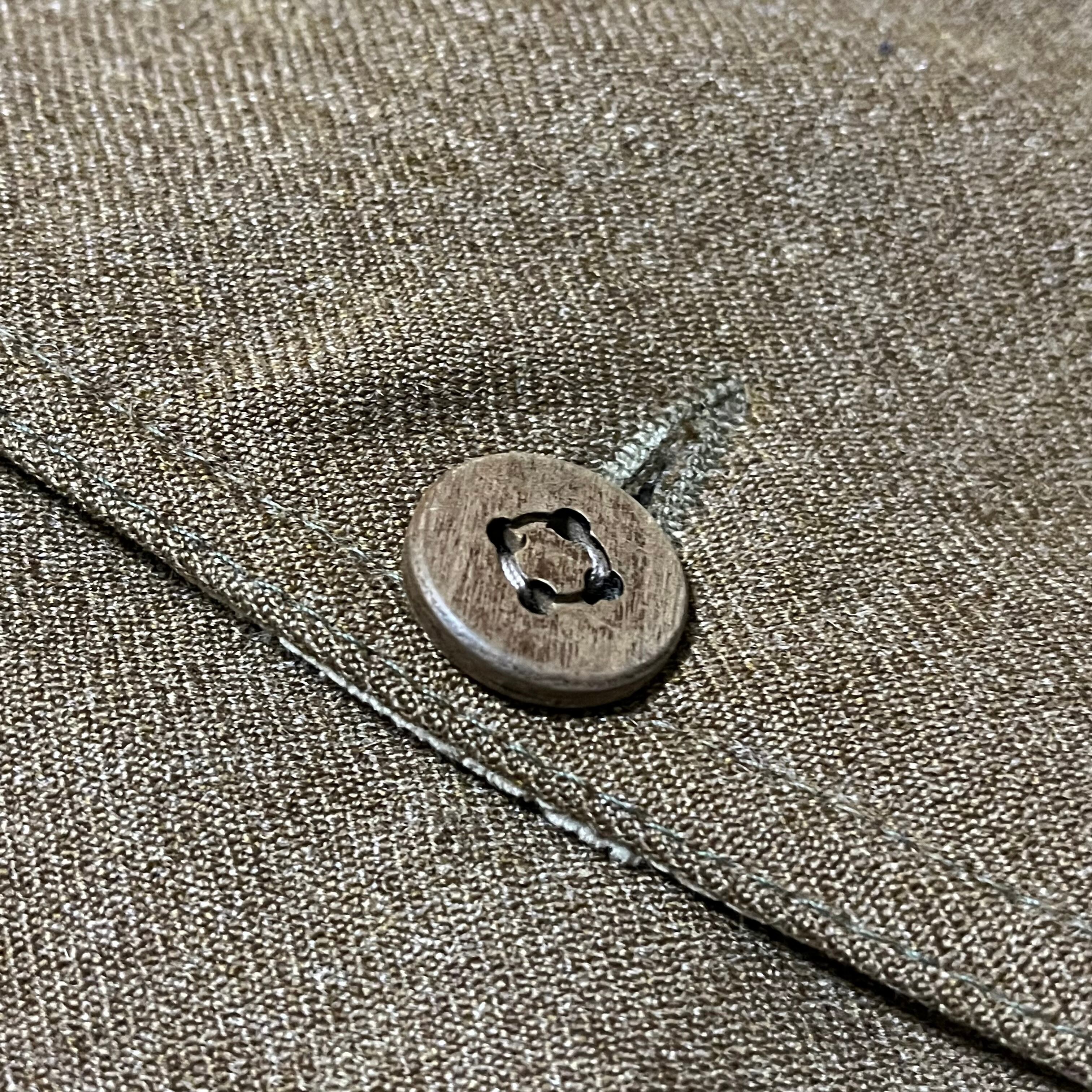 ボタンには木製の4つ穴のウッドボタン